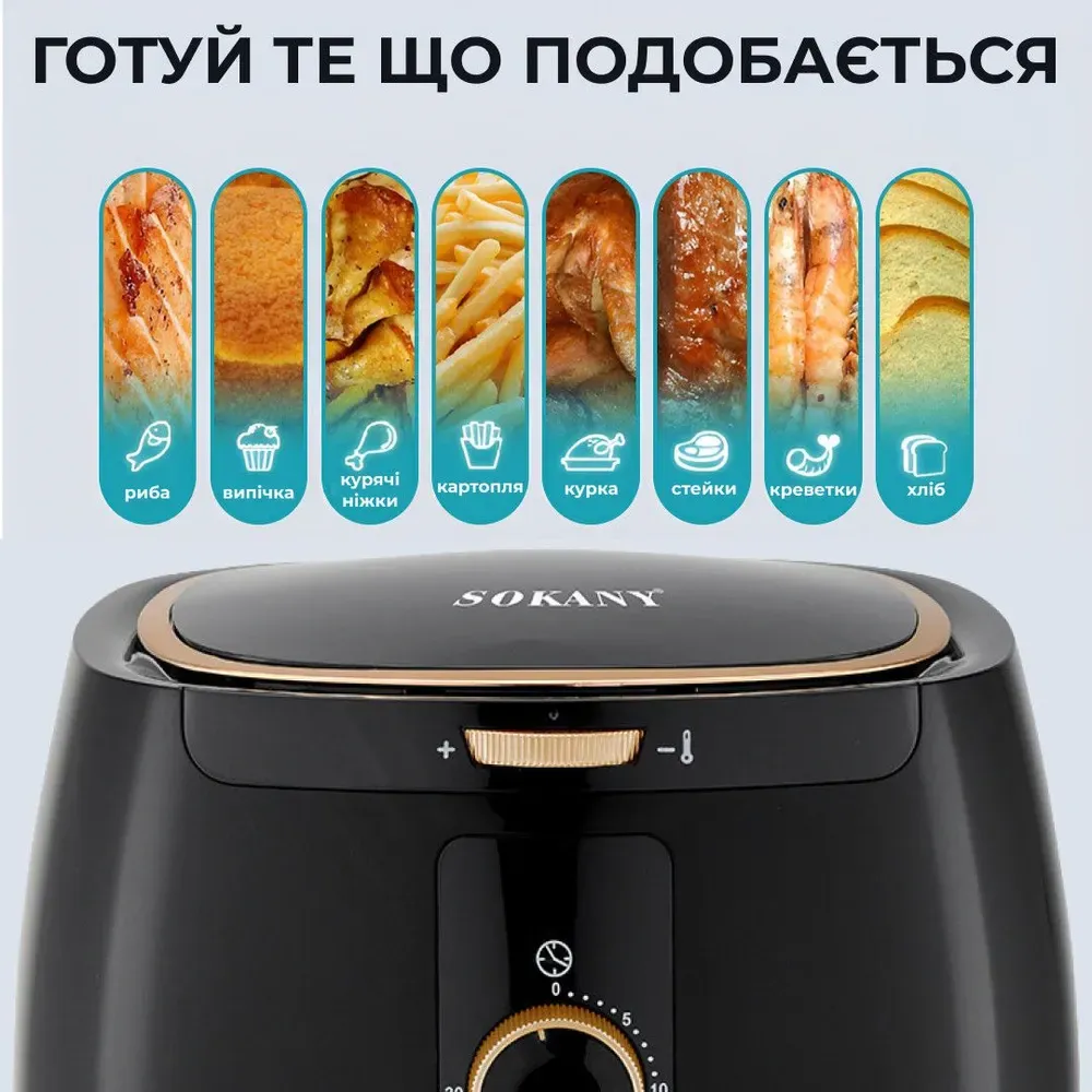 Аерофритниця електрична 6.5 л SOKANY аерогриль з терморегулятором 1300 Вт (SK8027)