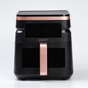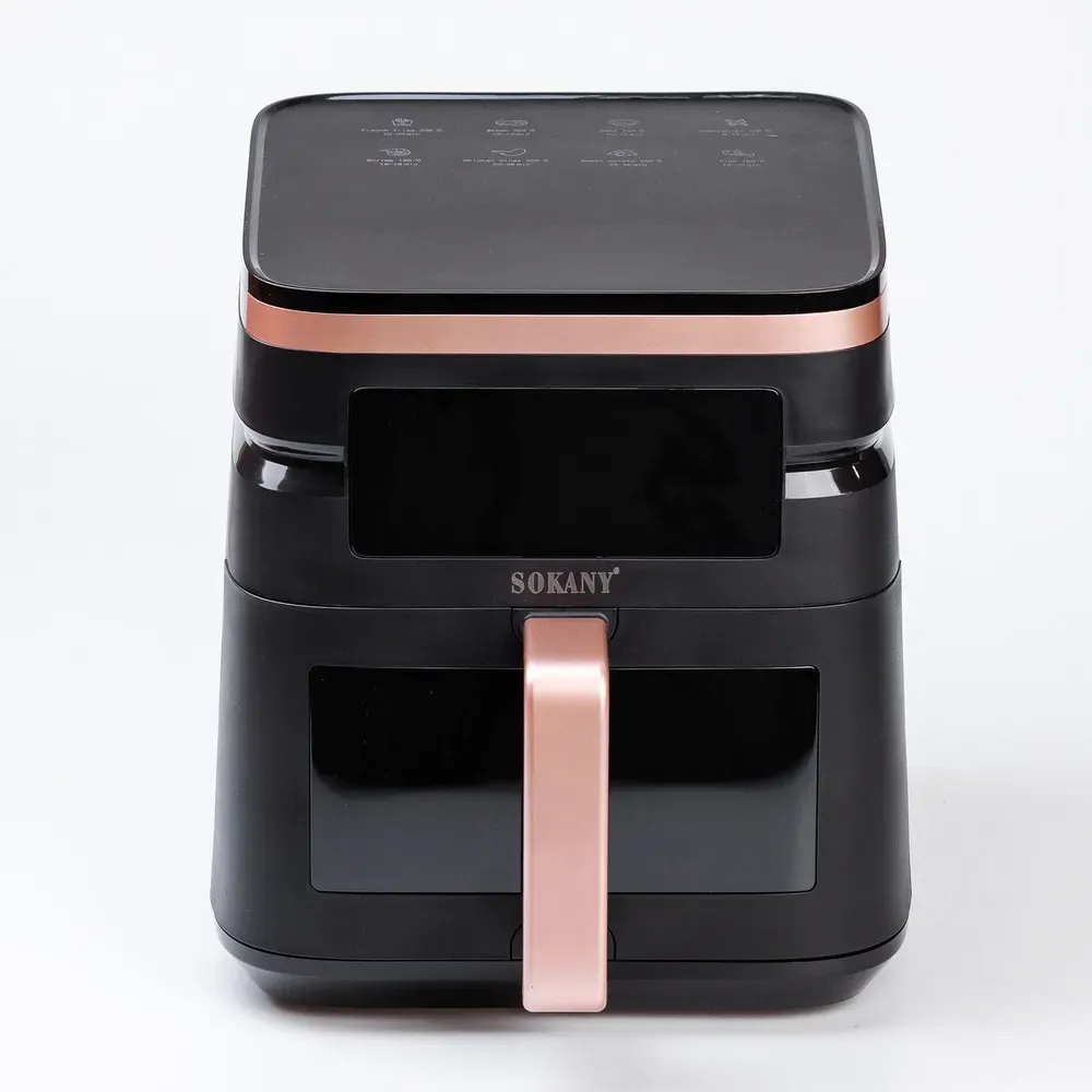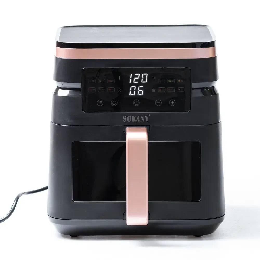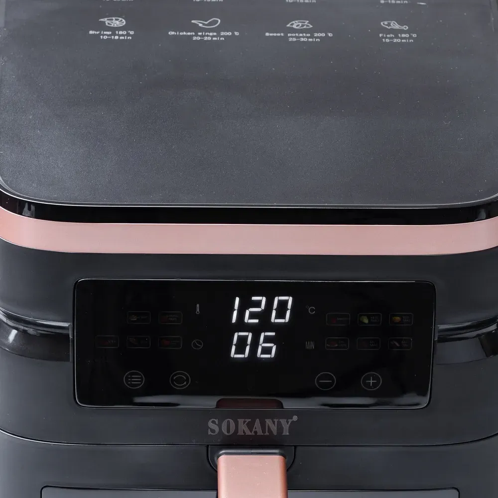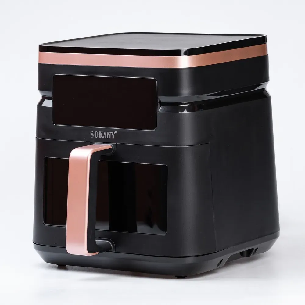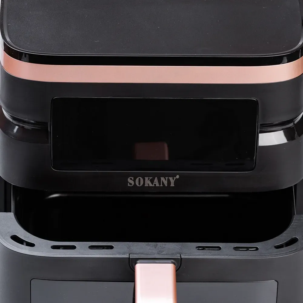 Sokany SK-10033 - це багатофункціональна аерофритюрниця, що поєднує в собі функції аерогрилю та мультипечі. Вона дозволяє готувати різні страви без використання олії або з мінімальною її кількістю, зберігаючи при цьому всі корисні речовини та смакові якості продуктів.