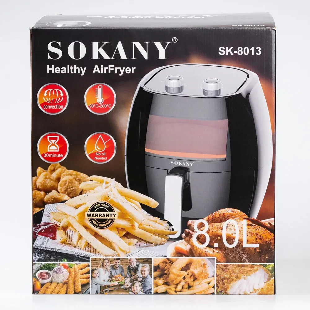 Sokany SK-8013 - це багатофункціональна аерофритюрниця, що поєднує в собі функції аерогрилю та мультипечі. Вона дозволяє готувати різні страви без використання олії або з мінімальною її кількістю, зберігаючи при цьому всі корисні речовини та смакові якості продуктів.