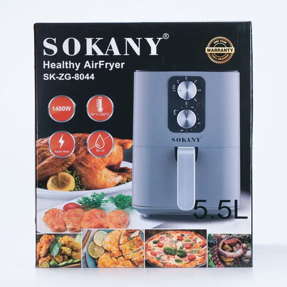 Sokany SK-ZG-8044 - це багатофункціональна аерофритюрниця, що поєднує в собі функції аерогрилю та мультипечі. Вона дозволяє готувати різні страви без використання олії або з мінімальною її кількістю, зберігаючи при цьому всі корисні речовини та смакові якості продуктів.