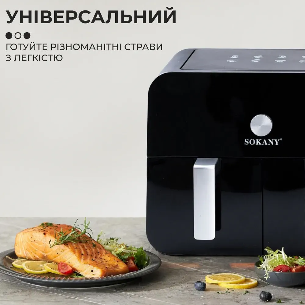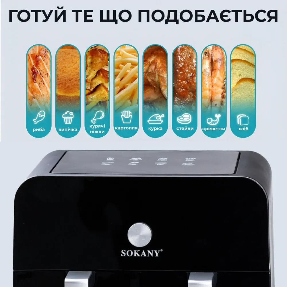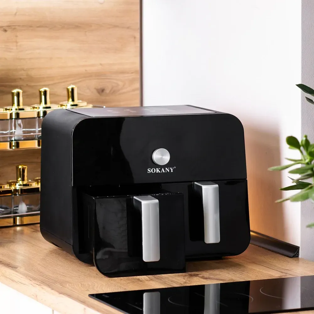 Аерофритюрниця електрична аерогриль 10 л 2400 Вт з двома відділеннями сенсорна SOKANY SK-10008 (SK10008)