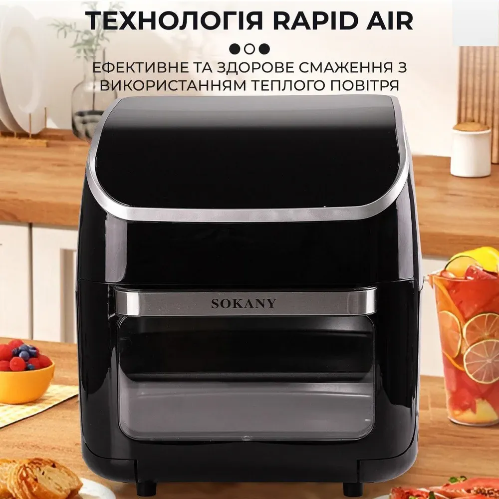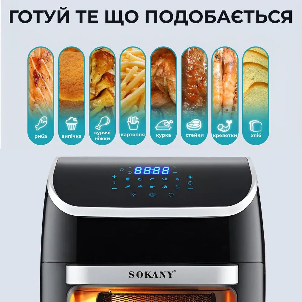 Аерофритюрниця електрична аерогриль 12 л 2500 Вт температура до 230 С захист від перегріву SOKANY SK-ZG-8039 (SKZG8039)