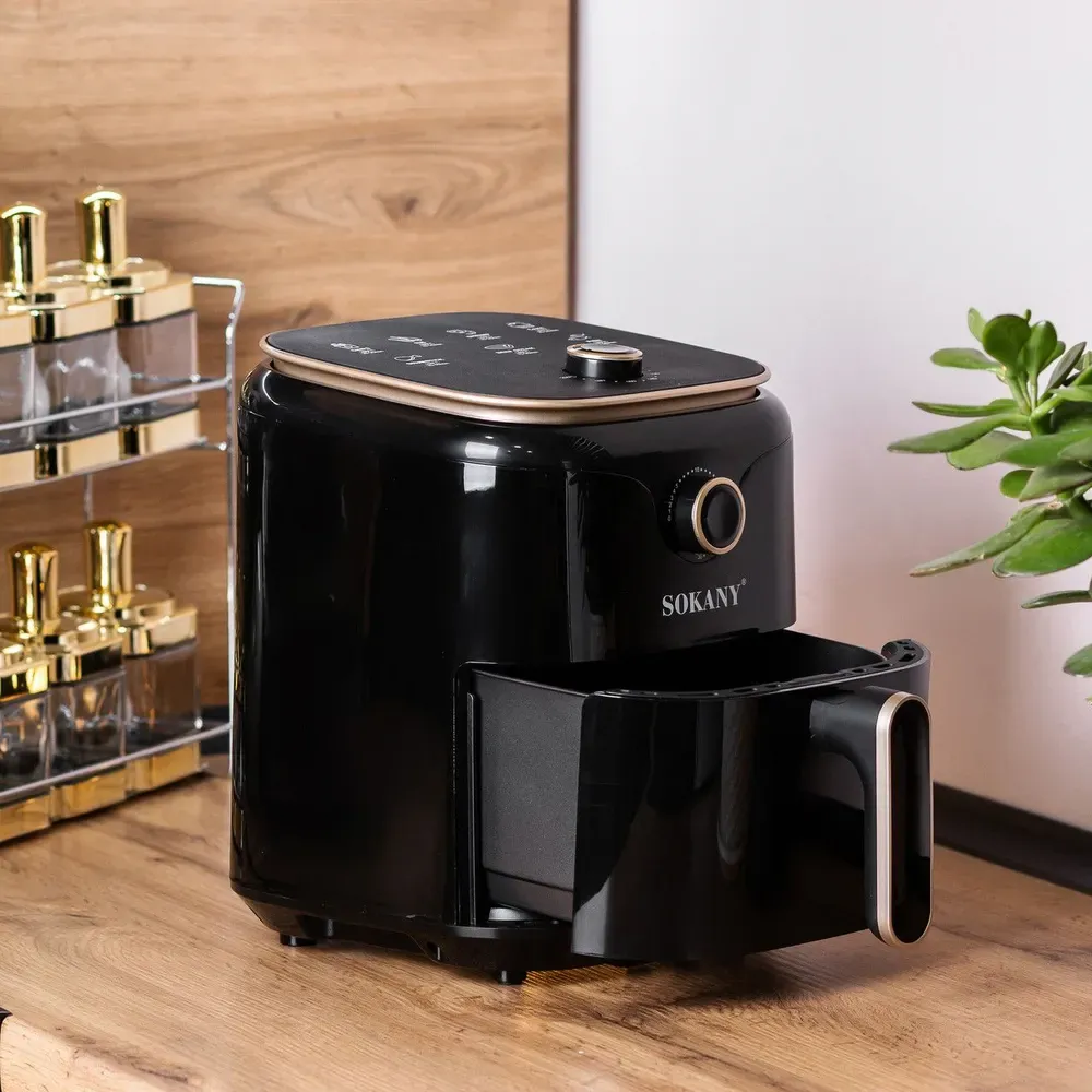 Аерофритюрниця SOKANY SK-10026 - неймовірно стильна фритюрниця, яка дозволить готувати продукти з малою кількістю масла, зберігаючи той самий смак і текстуру, які виходять у звичайному фритюрі. Ця унікальна модель дозволить приготувати максимально здорову картопля-фрі, зробити собі хрусткі бургери, м'ясо на грилі і навіть запекти хрусткий кекс. Вона допоможе насолоджуватися відмінним смаком їжі та не боятися появи зайвих кілограмів.