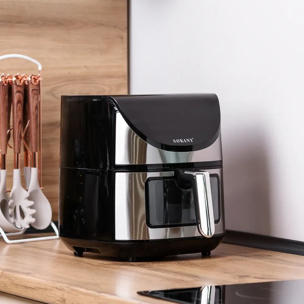- Стильний дизайн. Сучасний дизайн аерофритюрниці SOKANY, виконаний з високоякісних матеріалів, стане елегантним доповненням до вашої кухні.