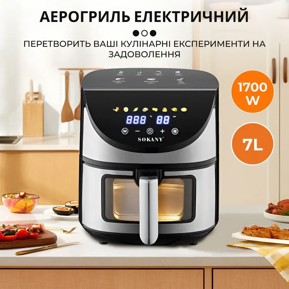 Аерофритюрниця електрична аерогриль 7 л 1800 Вт температура до 200 С і таймер SOKANY (SK10031)