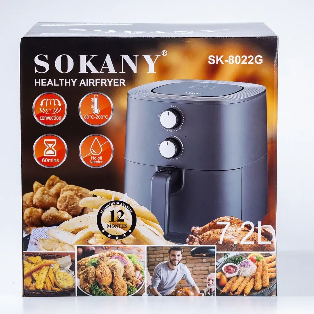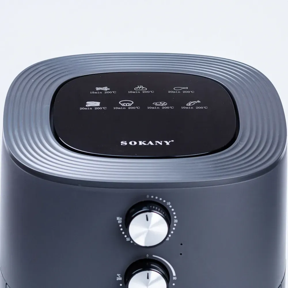 Аерофритюрниця SOKANY є електричною мультипіччю з об'ємом 7,2 літра і потужністю 1700 Вт, створеною для приготування здорових і смачних страв із мінімальною кількістю олії.