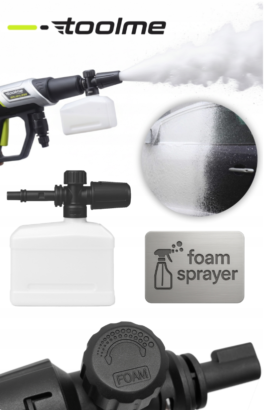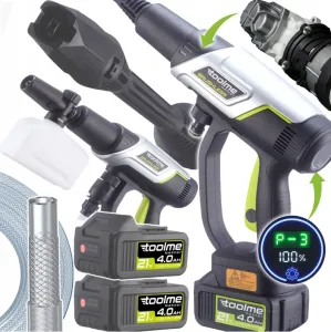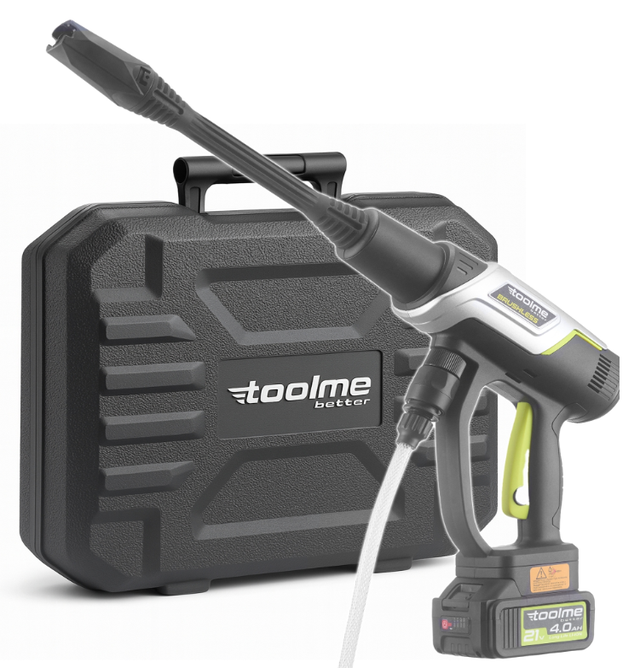 Акумуляторна мийка високого тиску Toolme TM280 PRO BRUSHLESS 450 Вт з алюмінієвою помпою, 2 АКБ 21В, піногенератор (Польща)