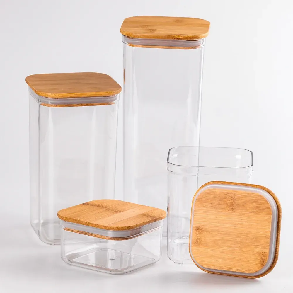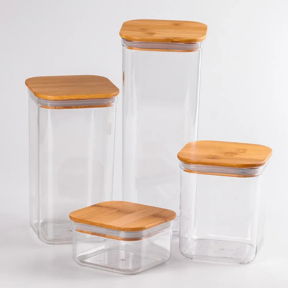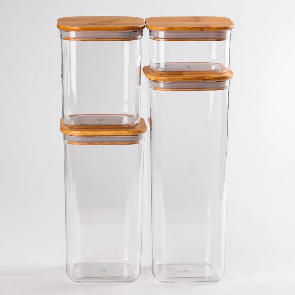 Дерев'яні кришки створюють привабливий контраст із прозорим склом, надаючи набору теплий і натуральний вигляд. Кришки забезпечують герметичне закриття, підтримуючи свіжість і зберігаючи якість збережених продуктів.