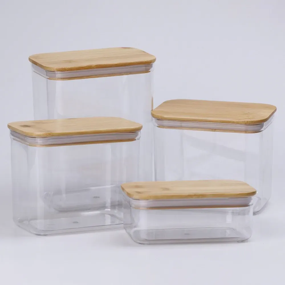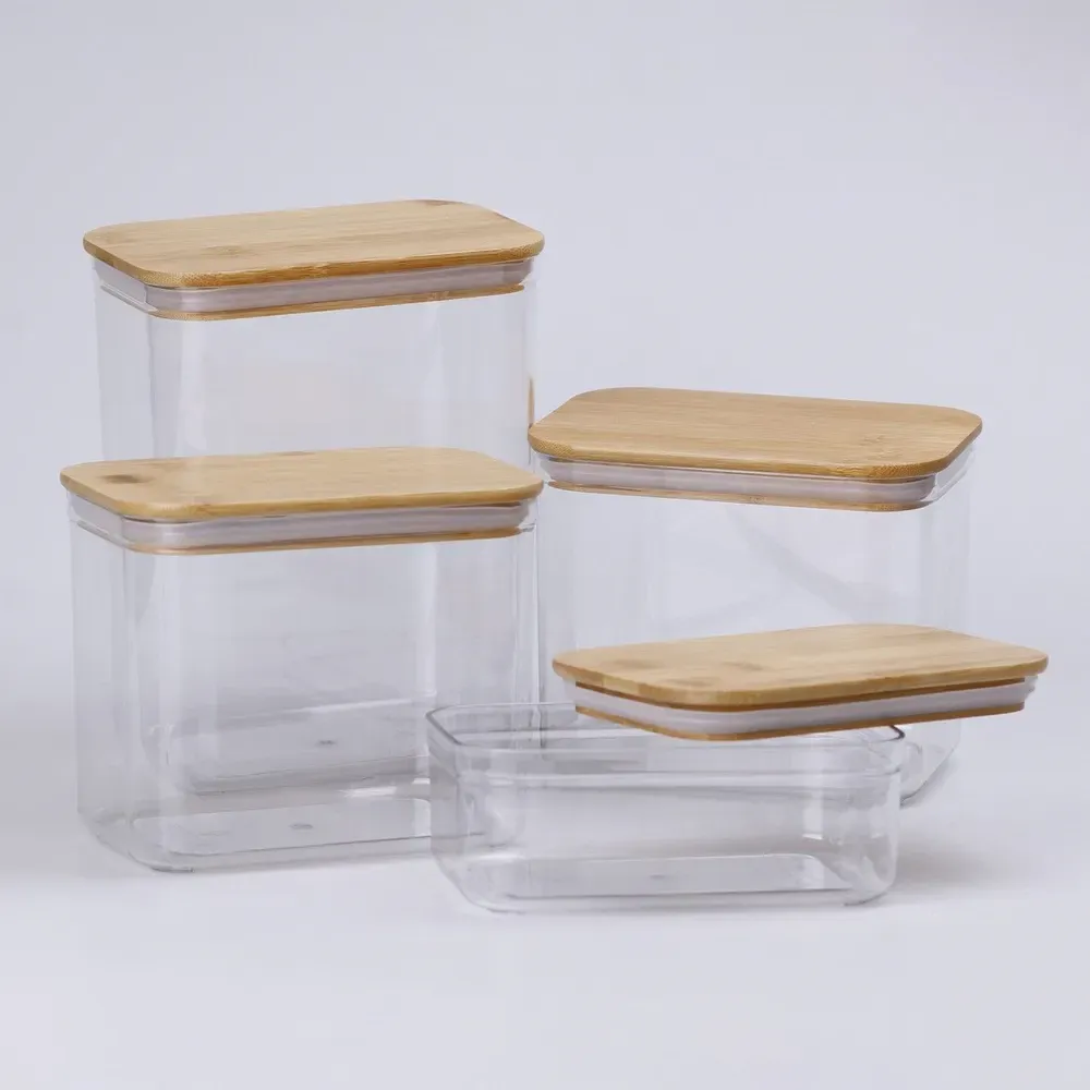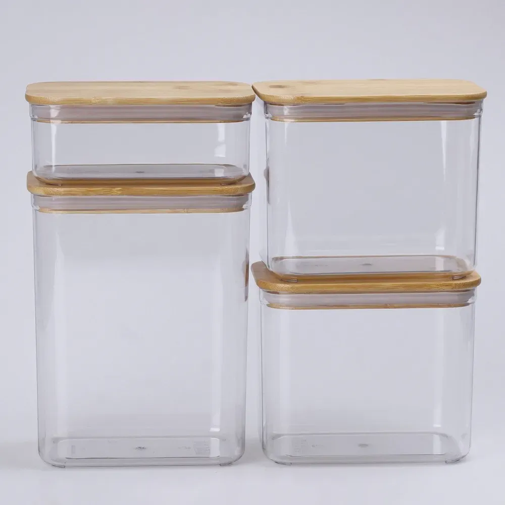 Дерев'яні кришки створюють привабливий контраст із прозорим склом, надаючи набору теплий і натуральний вигляд. Кришки забезпечують герметичне закриття, підтримуючи свіжість і зберігаючи якість збережених продуктів.