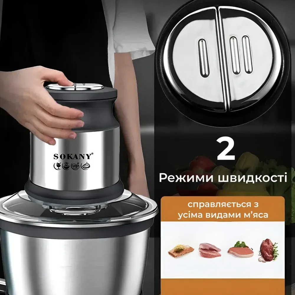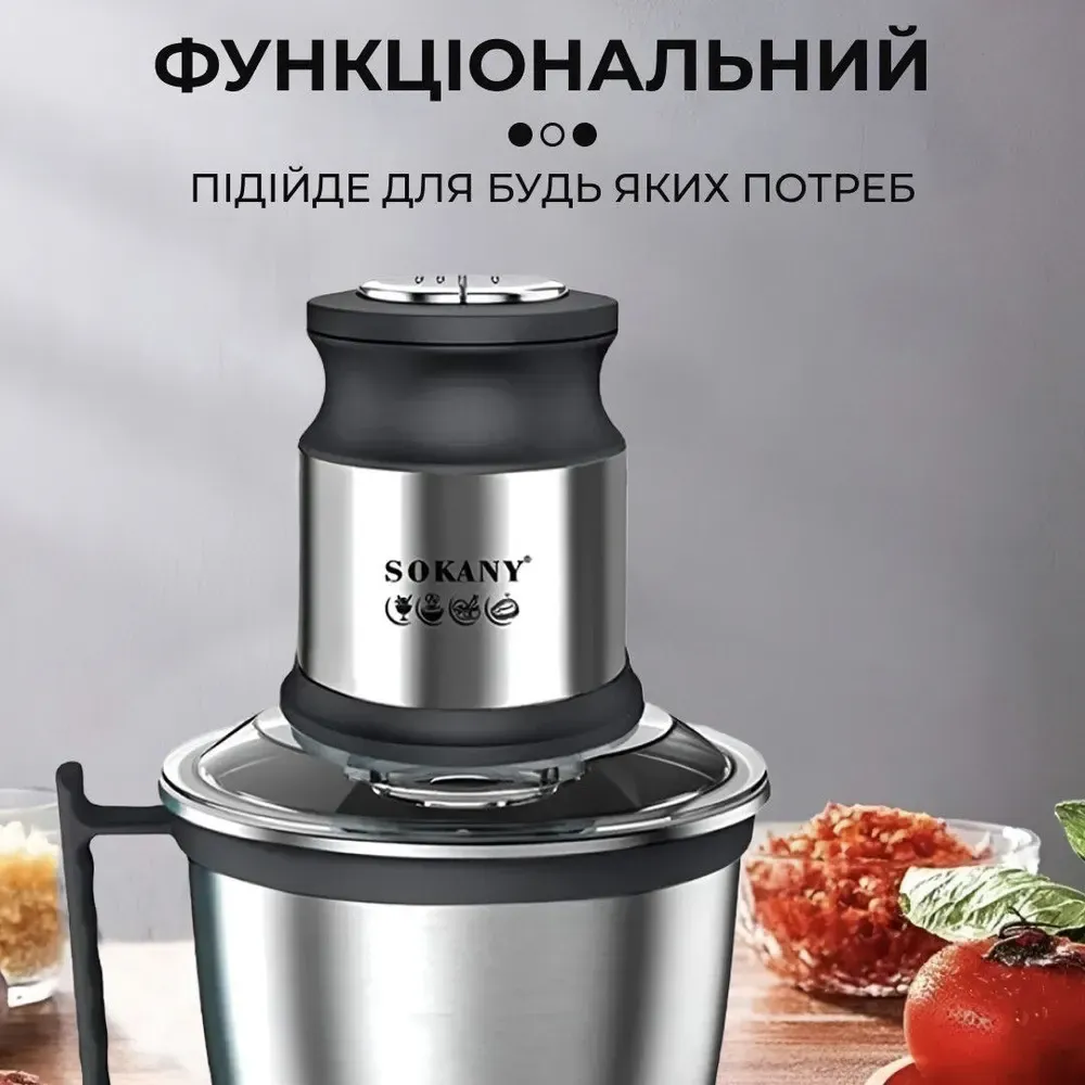 Блендер чопер подрібнювач 800 Вт 3 л м'ясорубка на 4 леза та 2 режими швидкості Sokany SK-7027 (SK7027SS)