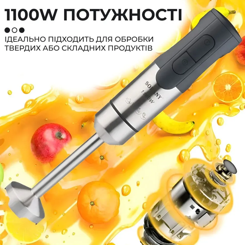 Блендер заглибний ручний полегшений з нержавіючої сталі 1100 Вт 2 режими швидкості Sokany SM-5021S (SM5021SB)