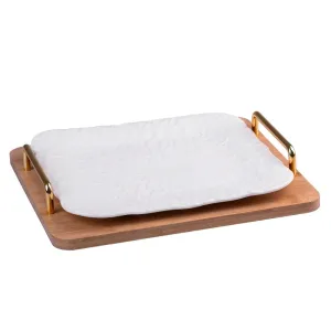 Блюдо сервірувальне прямокутне порцелянове на дерев'яній підставці 28×29.5 (HP482)