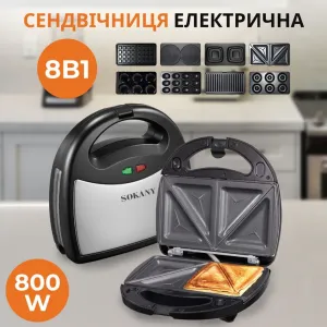 Бутербродниця сендвічниця мультипекар 8 в 1 800 Вт антипригарне покриття Sokany SK-B140-8 (SKB1408)