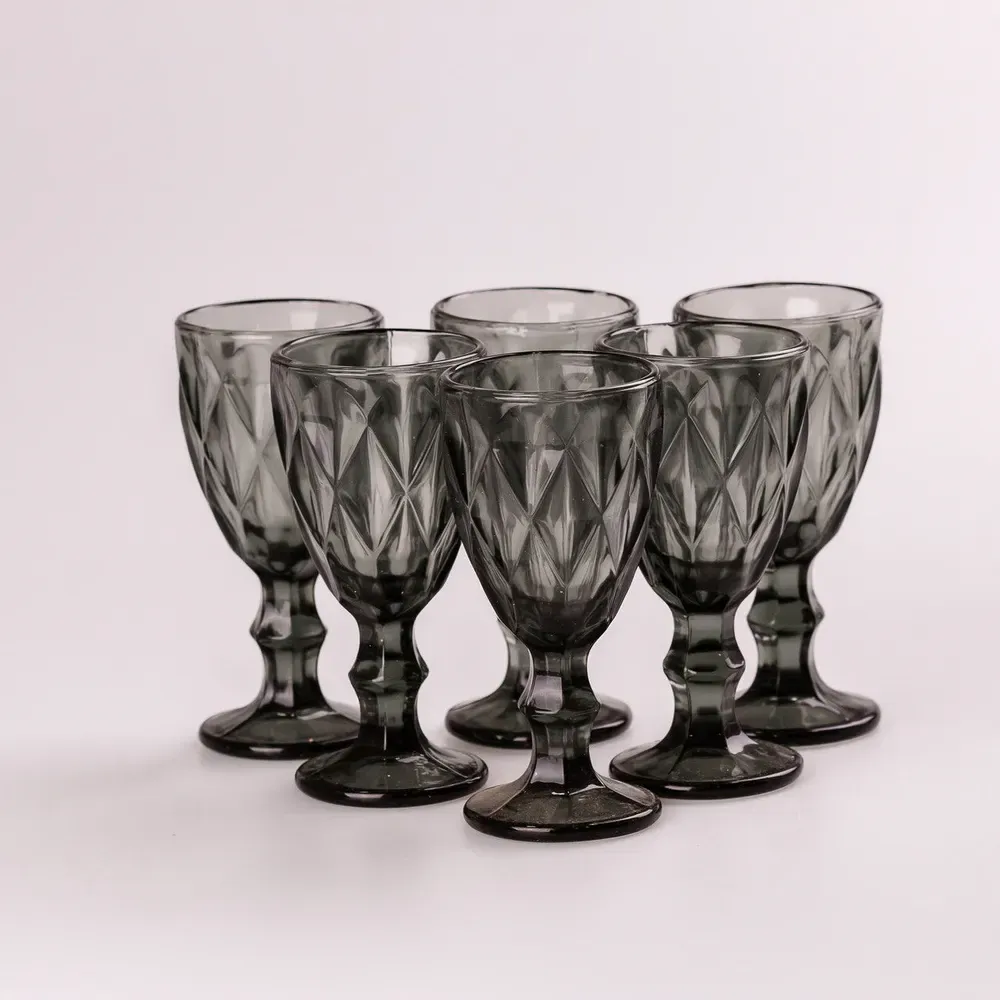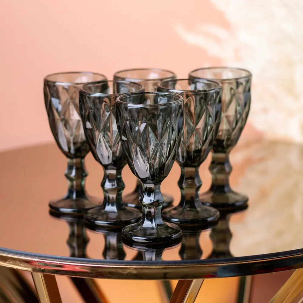 Чарка на ніжці для міцних напоїв фігурна гранована з товстого скла набір 6 шт Сірий (HP001G)