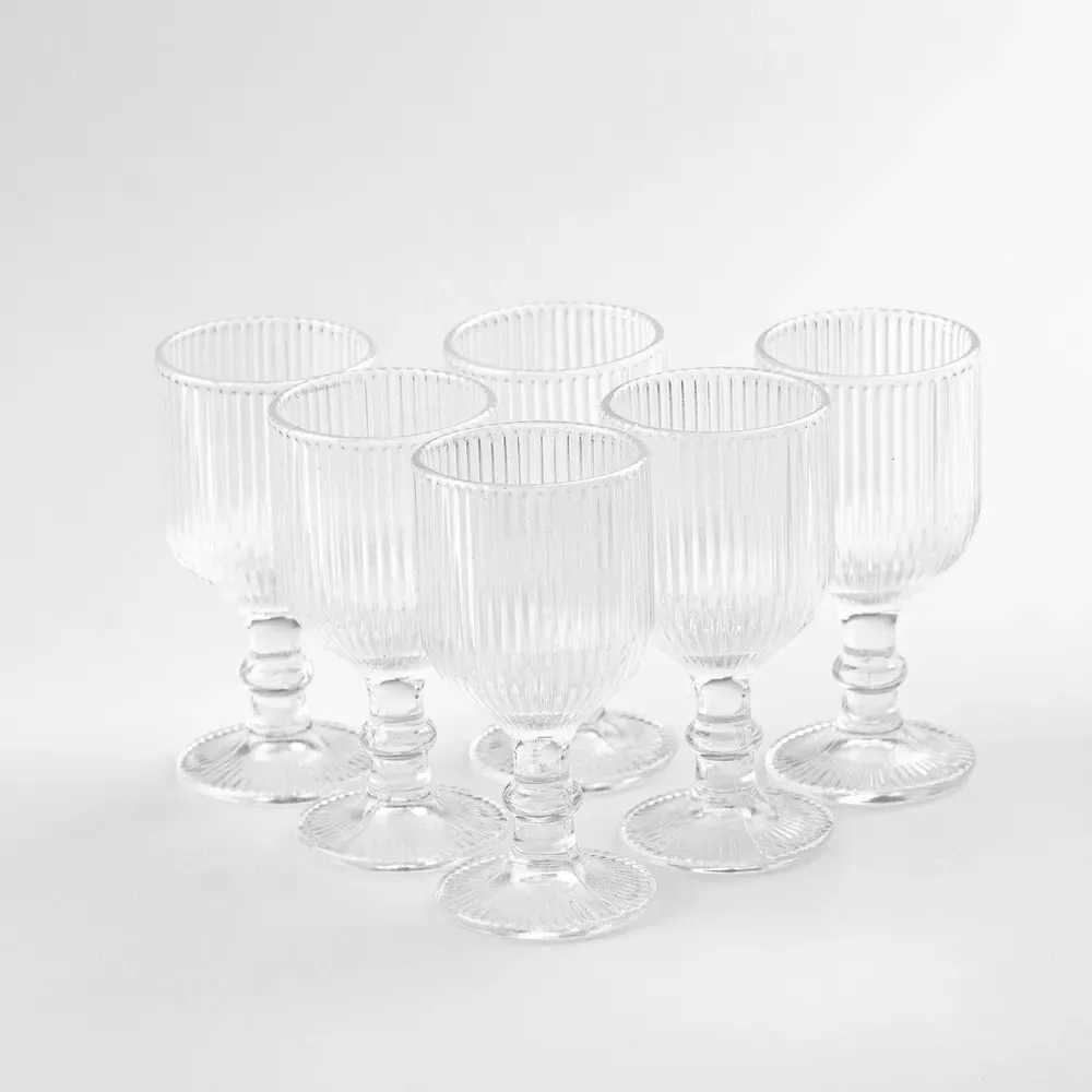 Чарка на ніжці для міцних напоїв фігурна прозора ребриста з товстого скла набор 6 шт (HP7111)