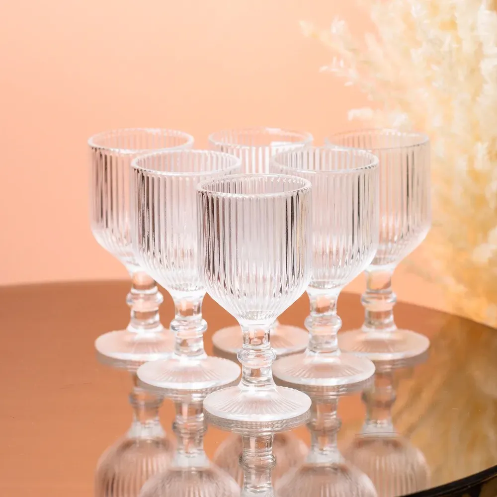 Скляна чарка, виконана в лаконічному дизайні - чудовий варіант для святкового сервірування. Особлива ребриста поверхня забезпечує заломлення світла у гранях, що допомагає створювати за столом урочисту атмосферу.