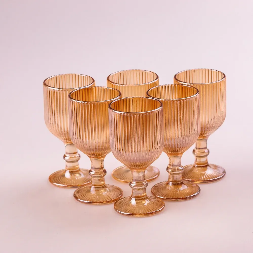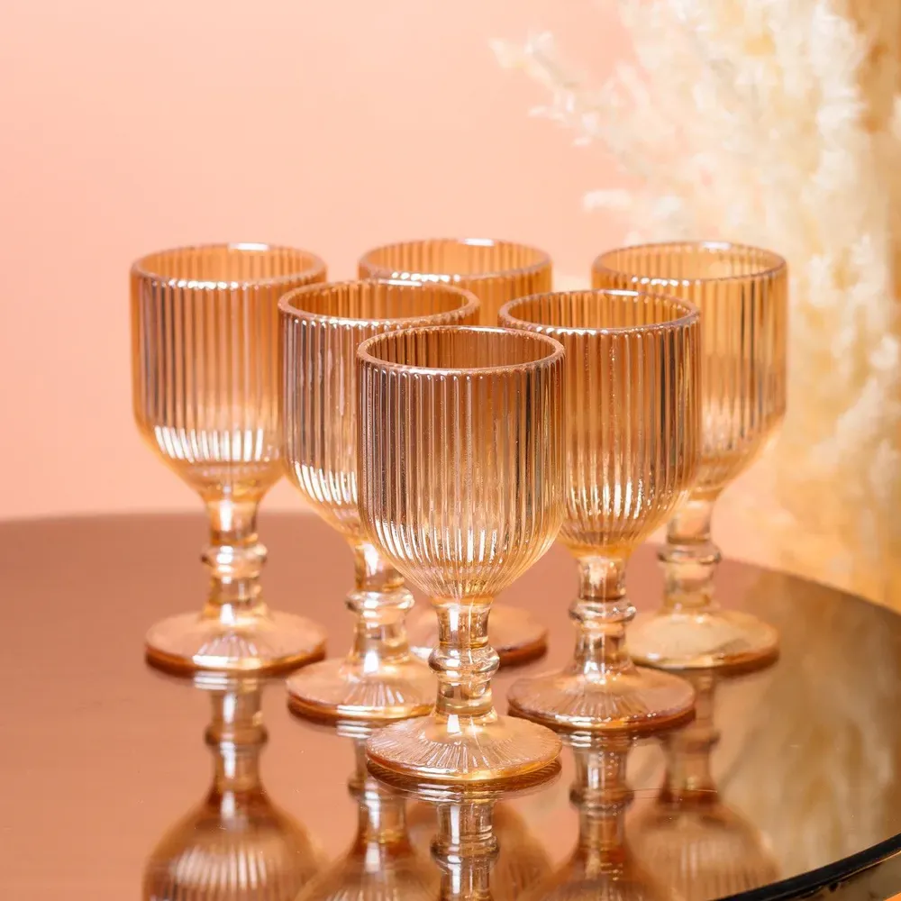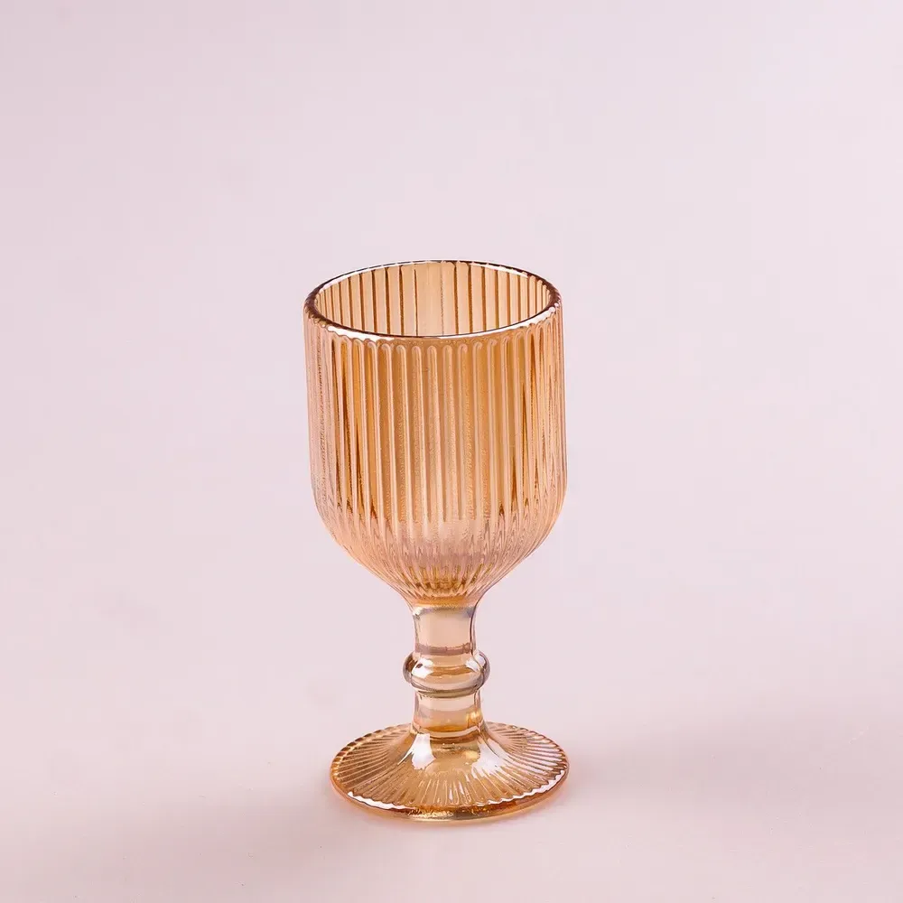 Чарка на ніжці для міцних напоїв фігурна прозора ребриста з товстого скла набор 6 шт Бурштиновий (HP7111A)