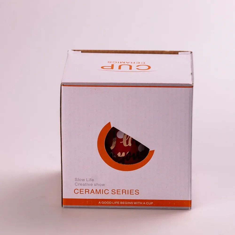 Чашка керамічна 400 мл Love з кришкою та ложкою Червоний (HPCY8263R)