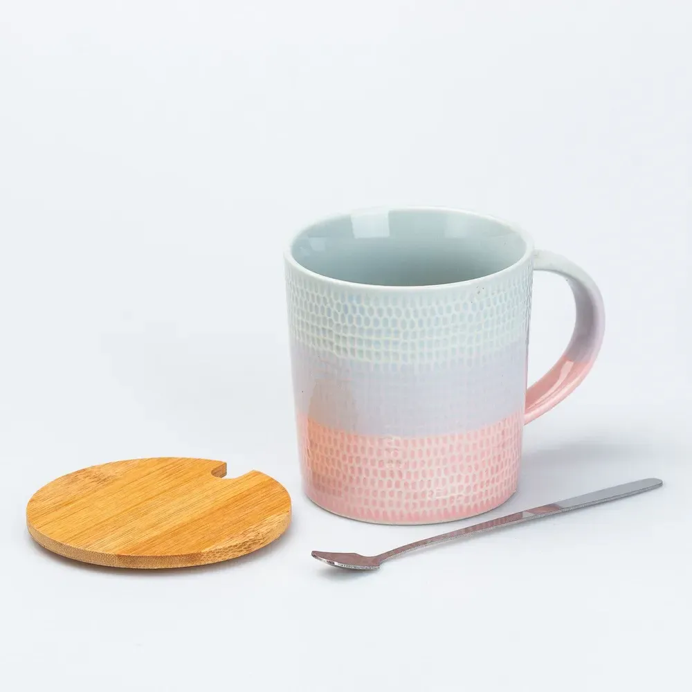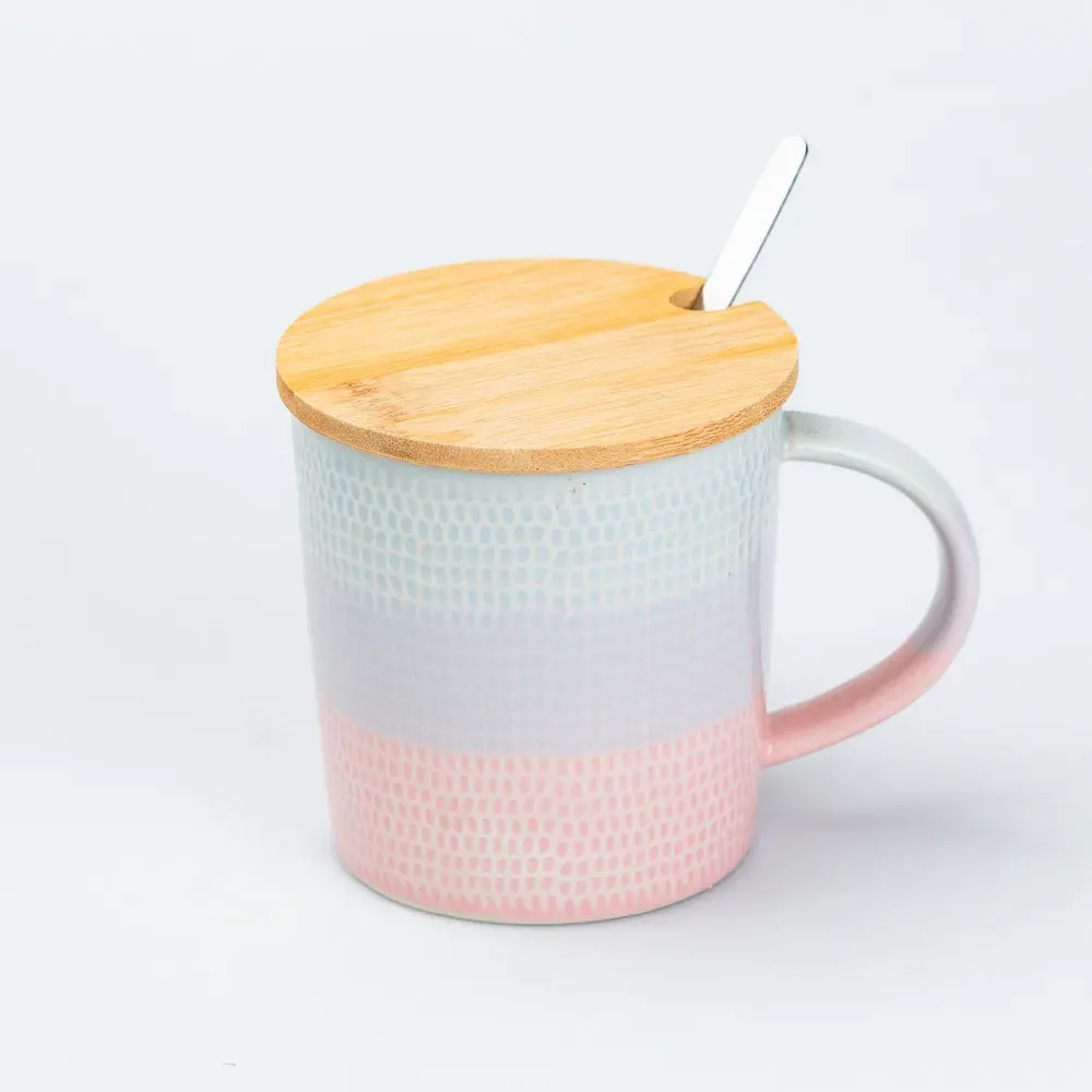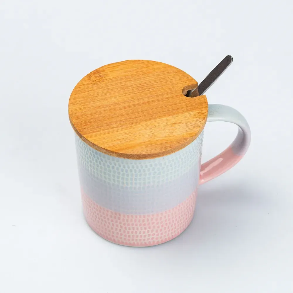 Чашка з бамбуковою кришкою та ложкою керамічна 350 мл Рожевий (HP7201P)