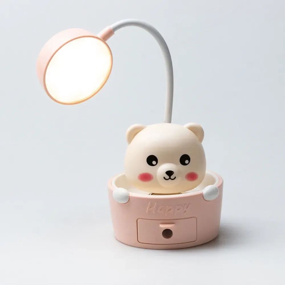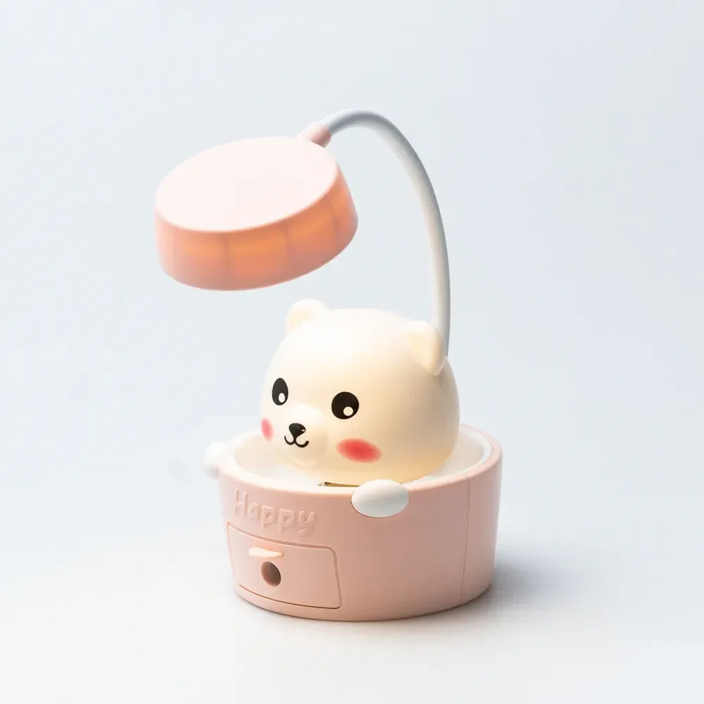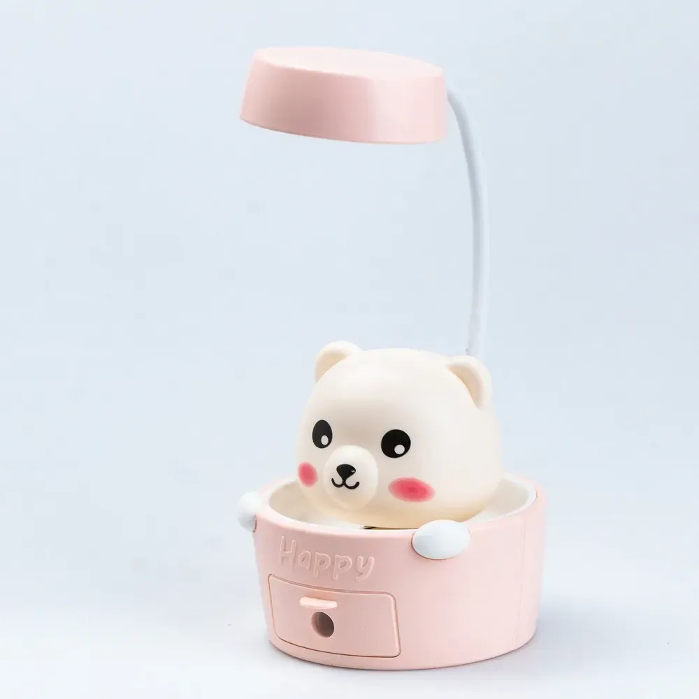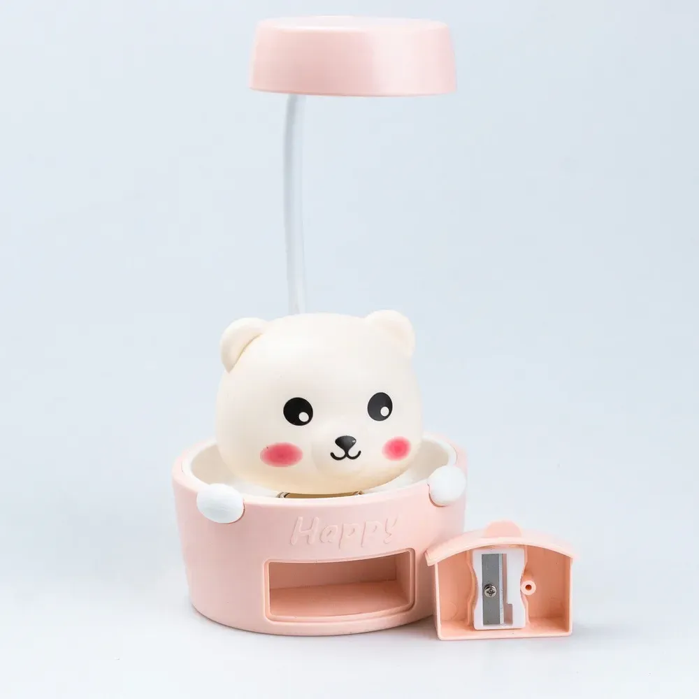 Дитяча настільна лампа світильник з точилкою для олівців "Ведмедик" Рожева (HP12268P)