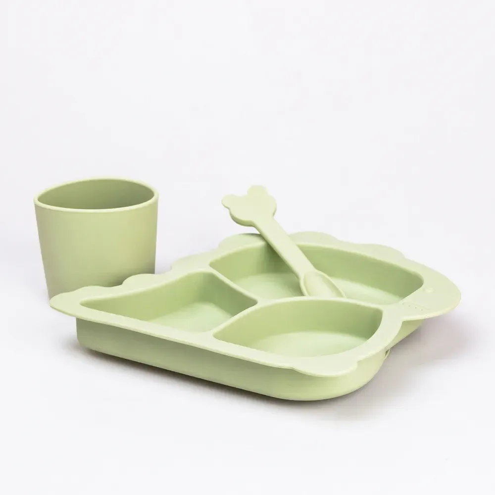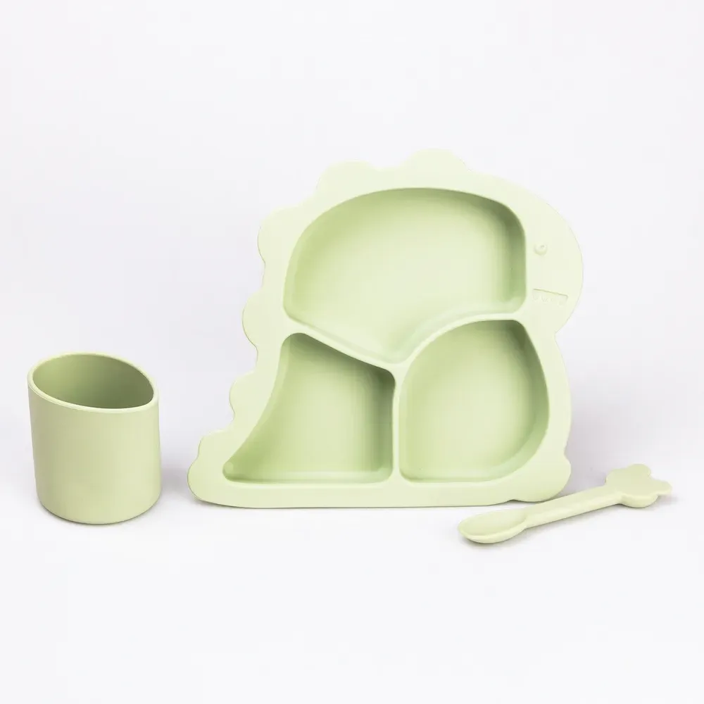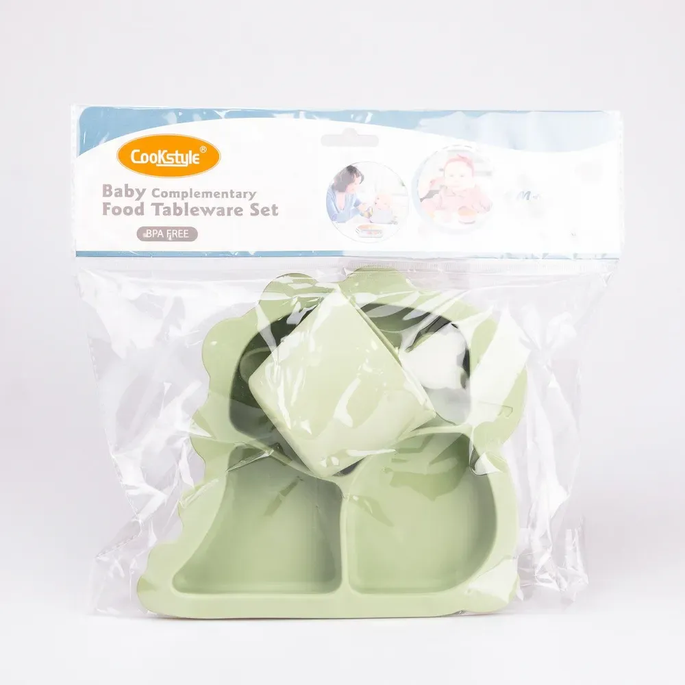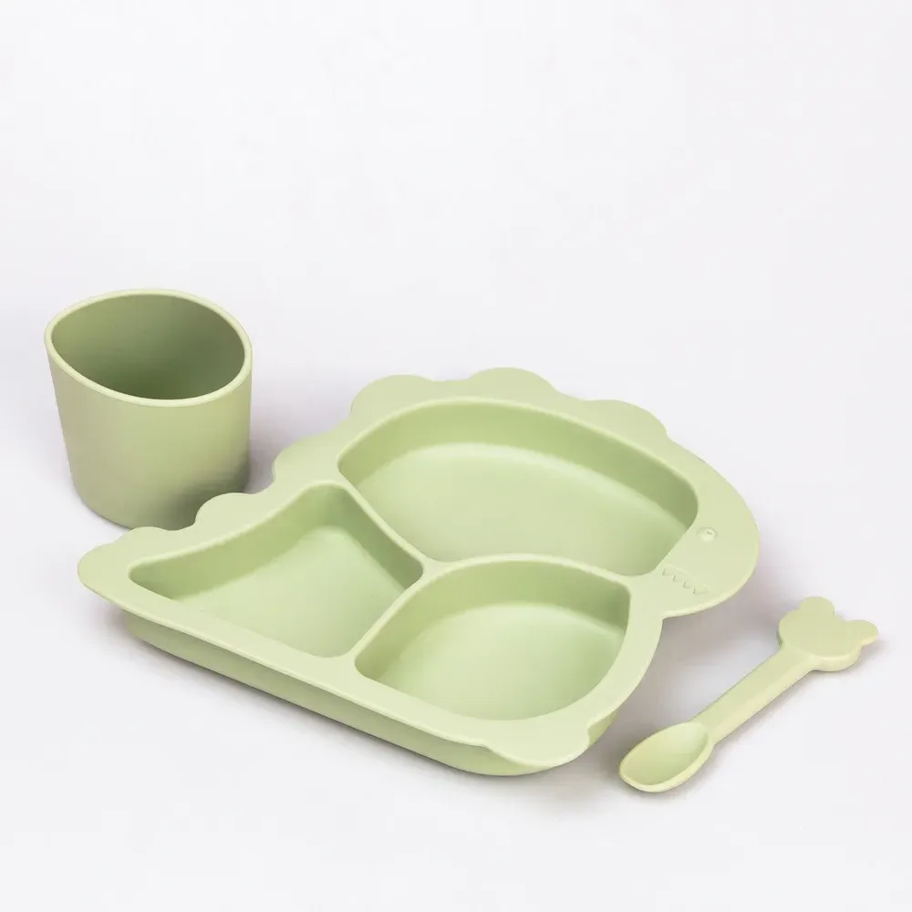 Дитячий набір силіконового посуду чашка / тарілка з трьома секціями / ложка (HP34545G)