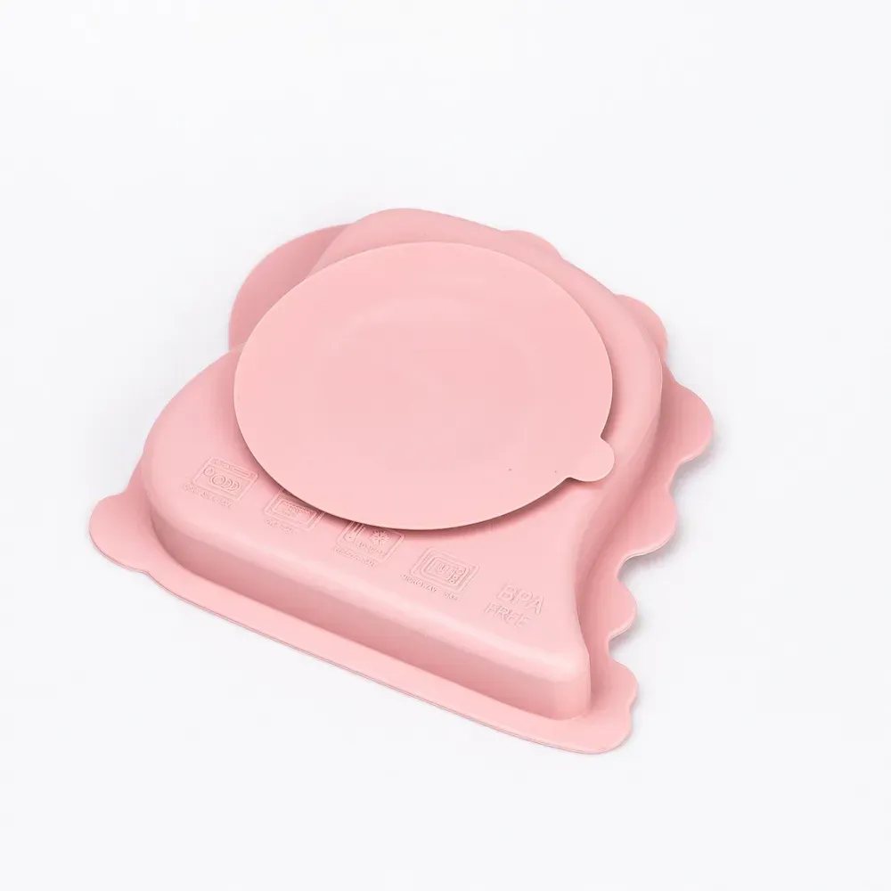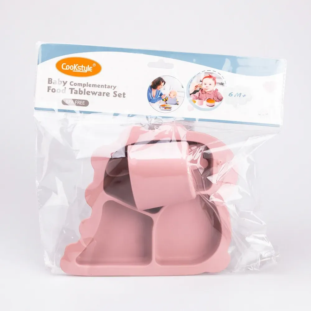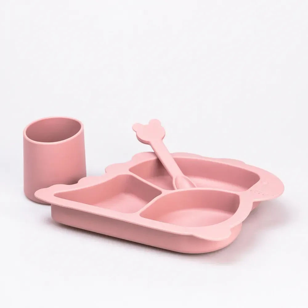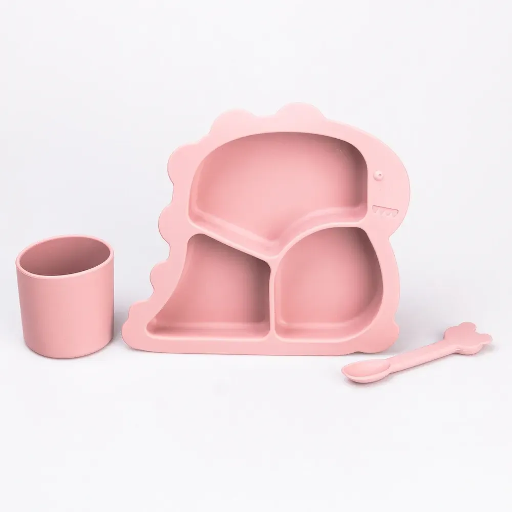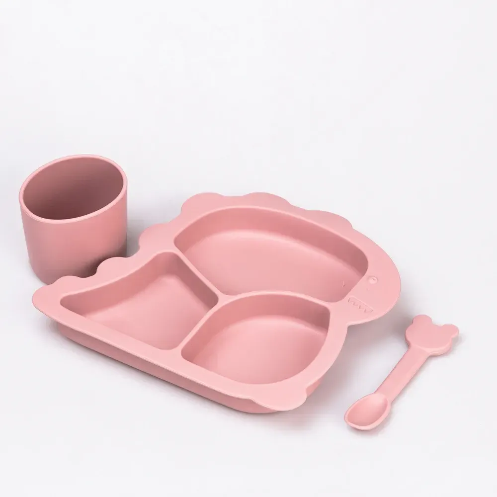 Дитячий набір силіконового посуду чашка / тарілка з трьома секціями / ложка Рожевий (HP34545P)