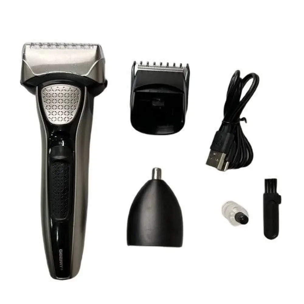 Електробритва портативна професійна чоловіча з насадками, бритва шейвер для сухого гоління Geemy GM-6726 Сріблястий (GM6726SL)