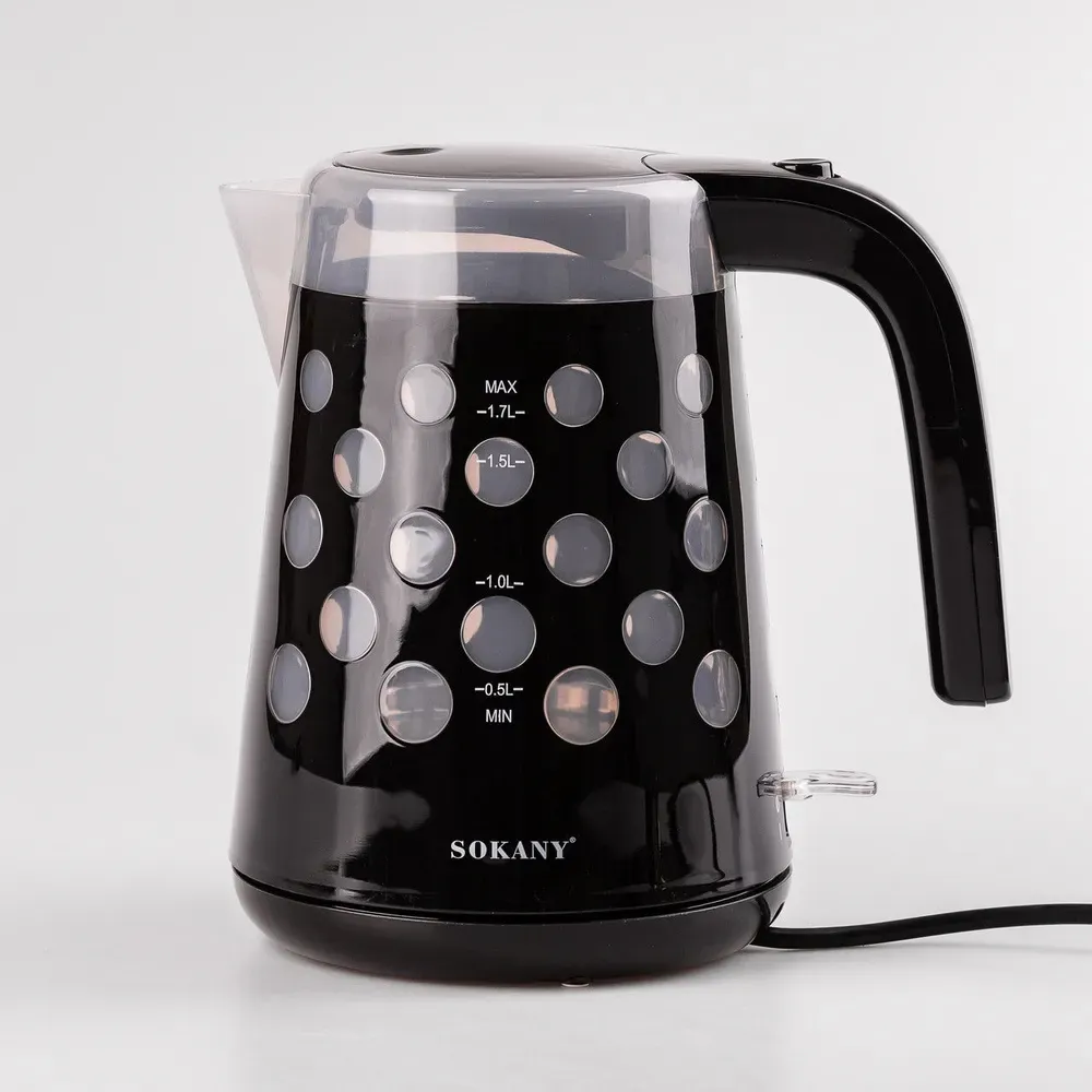 Електрочайник дисковий Sokany FK-1621 1.7л 1.85кВт Чорний в горошок (FK1621B)