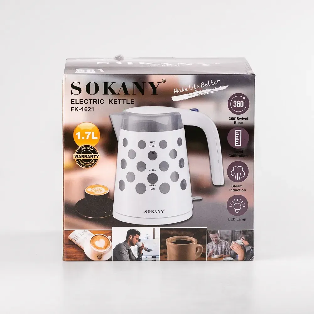 Sokany FK-1621 являє собою електрочайник сучасного дизайну, що поєднує в собі високу функціональність і зручність використання.
