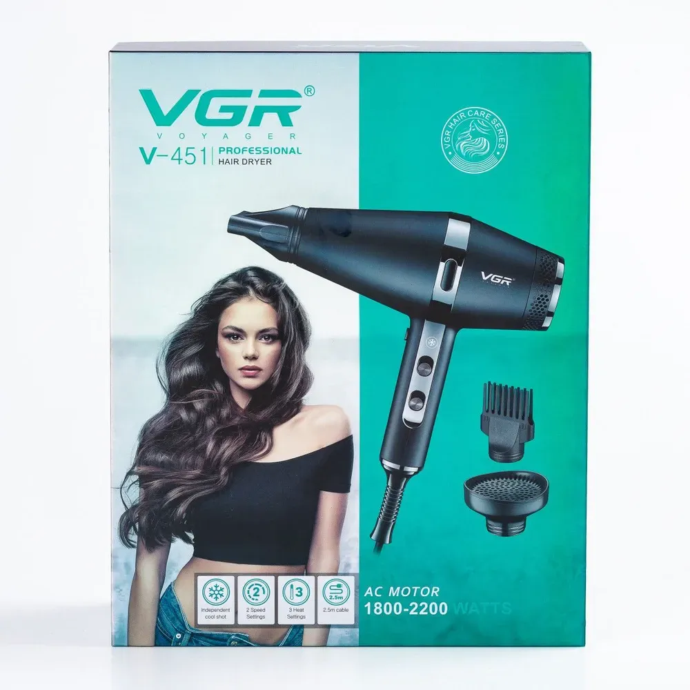 Фен для волосся професійний з концентратором 2000 Вт іонізація 2 режими роботи VGR V-451 (HPV451)