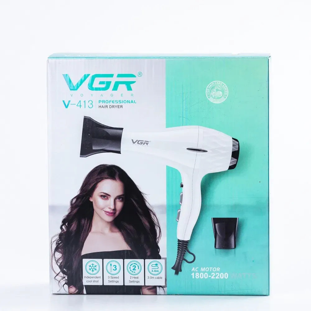 Фен для волосся професійний з концентратором 2200 Вт іонізація та 2 режими роботи VGR V-413 (HPV413)