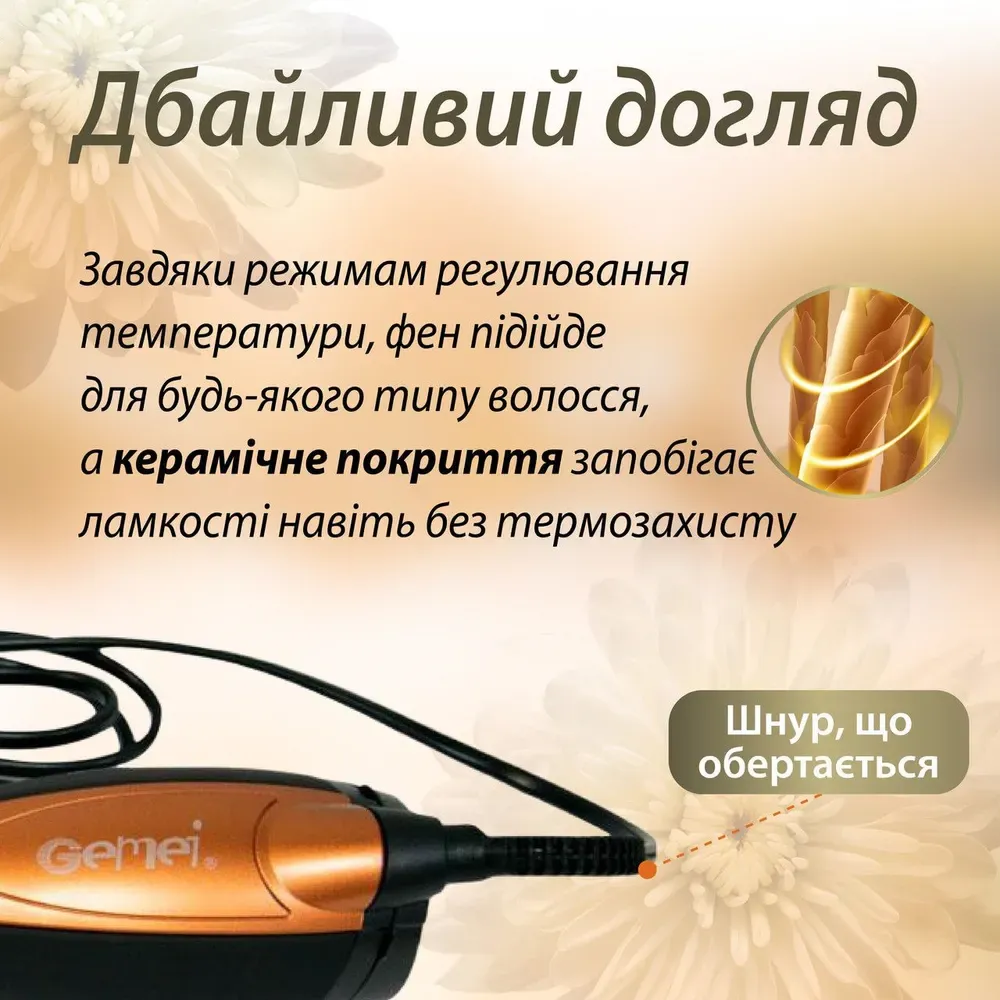 Бажаєте створити ефектну укладку? Тоді скористайтесь мультистайлером Gemei GM 4828, який додасть об'єму та ідеально просушить кожен локон.