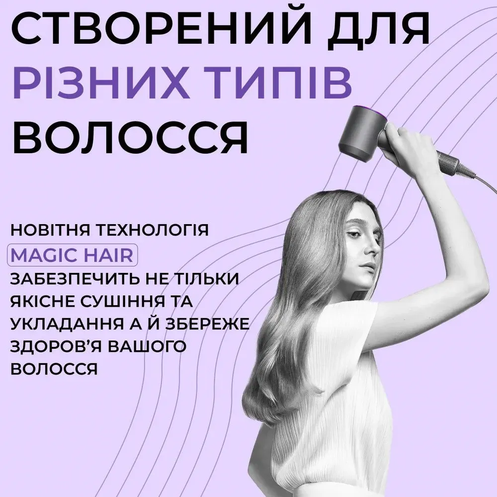 Фен стайлер для волосся Supersonic Premium 1600 Вт Magic Hair 3 режими швидкості 4 температури Фіолетовий (PH771V)