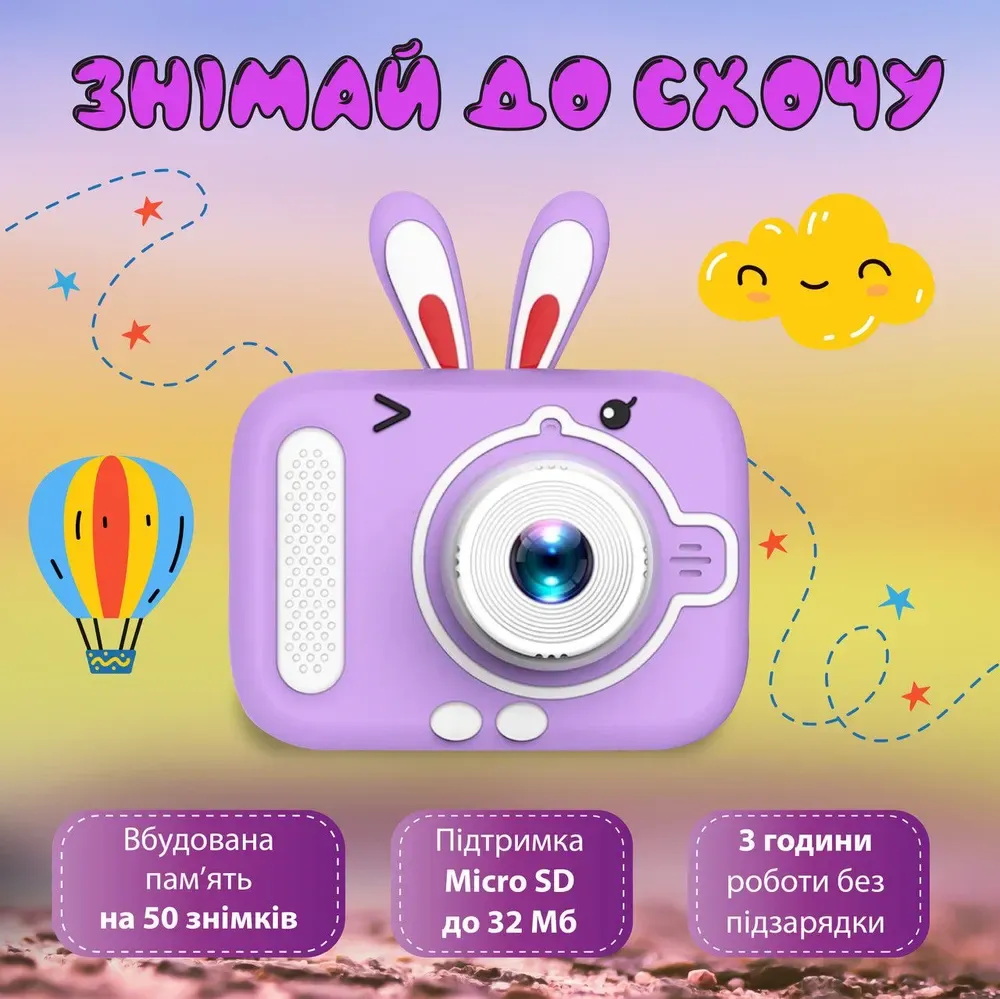 Фотоапарат дитячий міні акумуляторний з USB, цифрова фотокамера для фото та відео з іграми Фіолетовий (UR949V)
