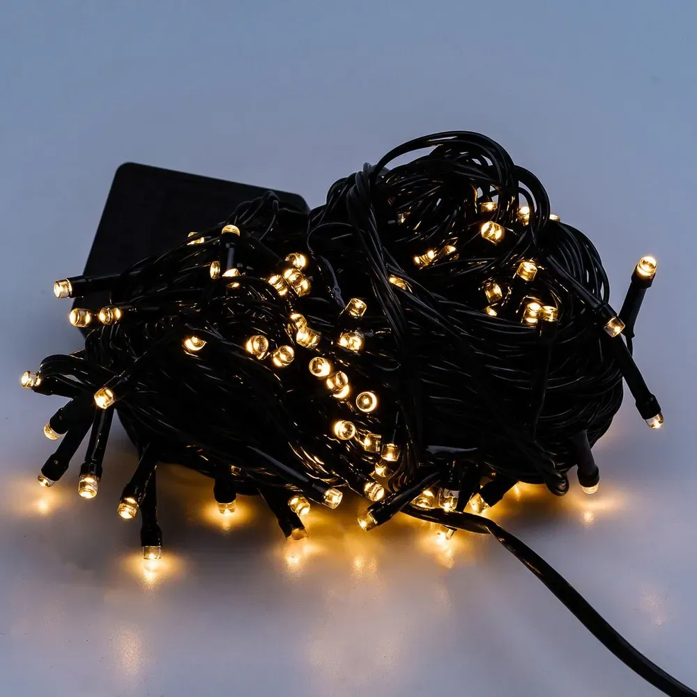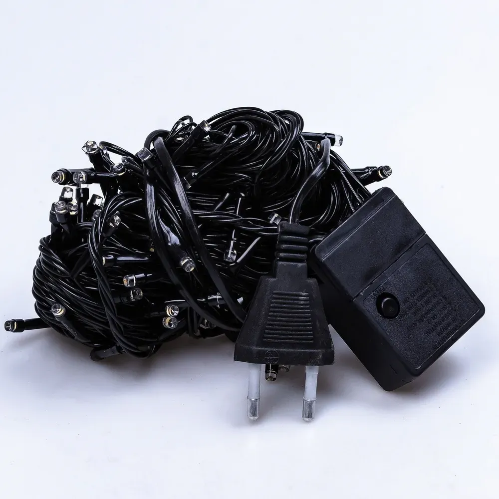 Гірлянда нитка 10м на 200 LED лампочок світлодіодна чорний провід 8 режимів роботи жовта (M200LEDY)