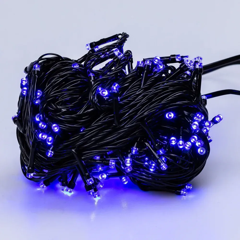 Гірлянда нитка 22 м на 500 LED лампочок світлодіодна чорний провід 8 режимів работи синя (M500LEDBL)
