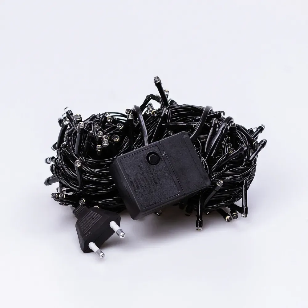 - 500 яскравих лампочок. Гірлянда обладнана 500 світлодіодними лампочками, які створюють яскраве і насичене світло в безлічі кольорів. Гірлянда також оснащена 8 режимами роботи, управління якими здійснюється завдяки спеціальному контролеру з кнопкою для перемикання режимів.
