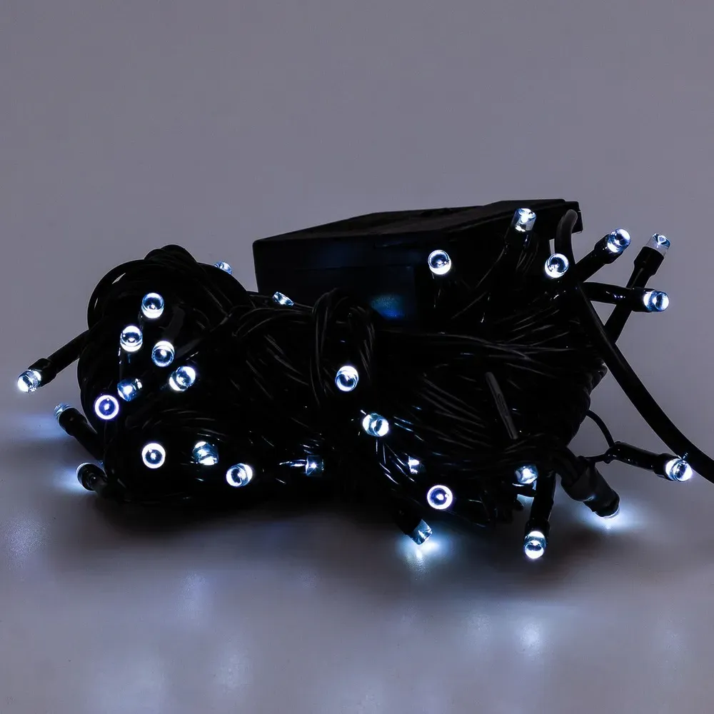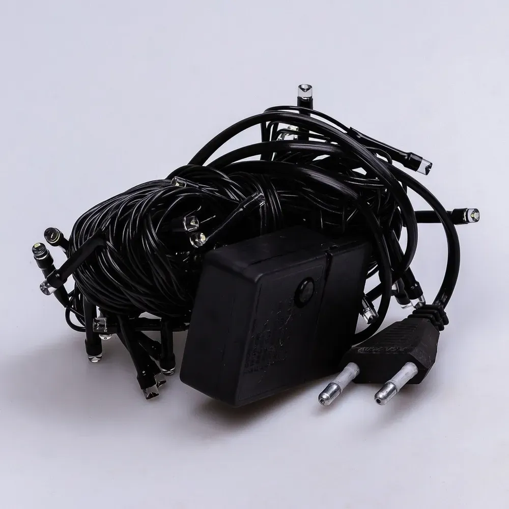 - 100 яскравих лампочок. Гірлянда обладнана 100 світлодіодними лампочками, які створюють барвисті та насичені колірні ефекти. Гірлянда також оснащена 8 режимами роботи, управління якими здійснюється завдяки спеціальному контролеру з кнопкою для перемикання режимів.