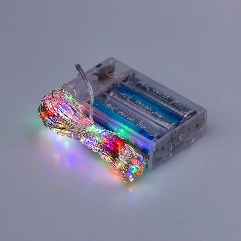 Гірлянда Роса 10 метрів на батарейках гнучка на 100 LED світлодіодна гірлянда мідний провід кольорова (1733027ML)