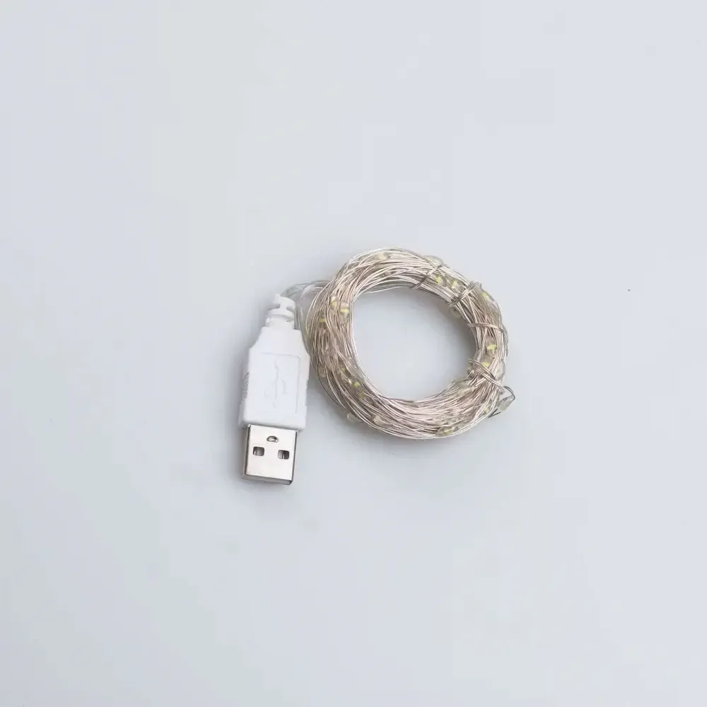 Гірлянда роса 10 метрів USB на 100 led світлодіодів крапля на білому дроті біла (USB100L10MWW)