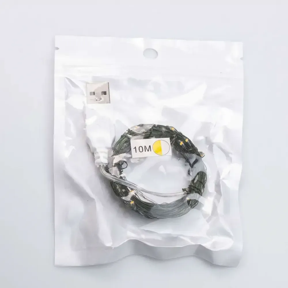 Гірлянда роса 10 метрів USB на 100 led світлодіодів крапля на зеленому дроті (USB100L10MGY)