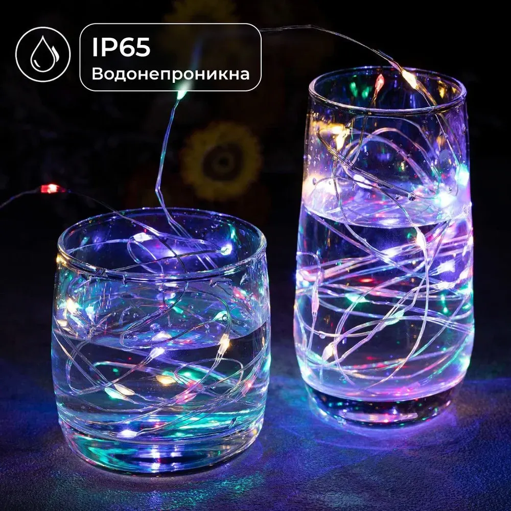 Гірлянда Роса 5 метрів на батарейках гнучка на 50 LED світлодіодна гірлянда мідний провід кольорова (1733021ML)