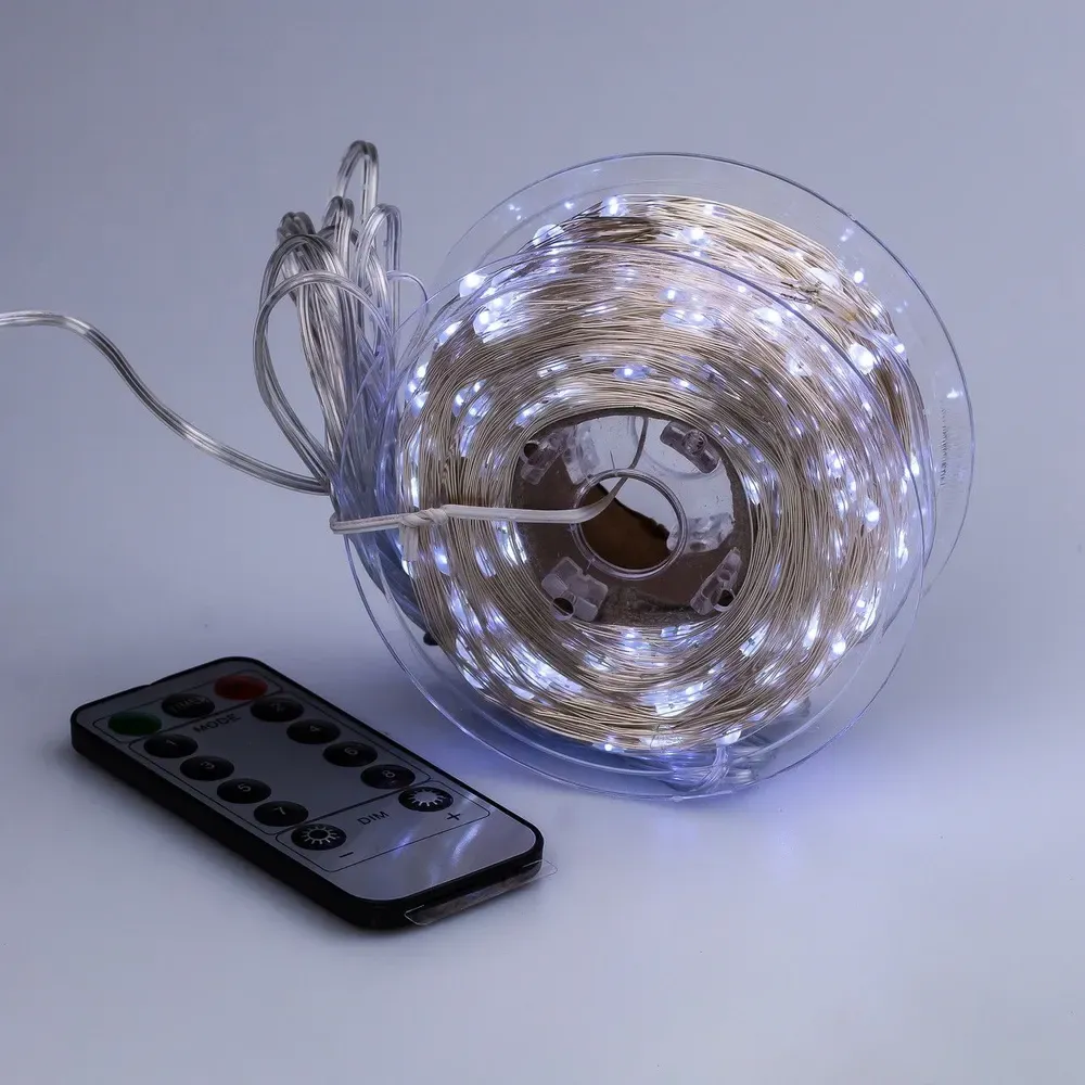 Гірлянда Роса Крапля 100 метров 1000 LED світлодіодна гірлянда в котушці мідний провід 8 функцій + пульт біла (1733039W)