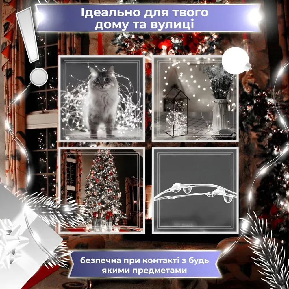 Довговічність та енергоощадження: Використовуючи сучасні LED-технології, гірлянда ефективно витрачає енергію, забезпечуючи яскраве світло та тривалий термін служби. Ви можете насолоджуватись світлом цієї гірлянди у багатьох святкових сезонах.