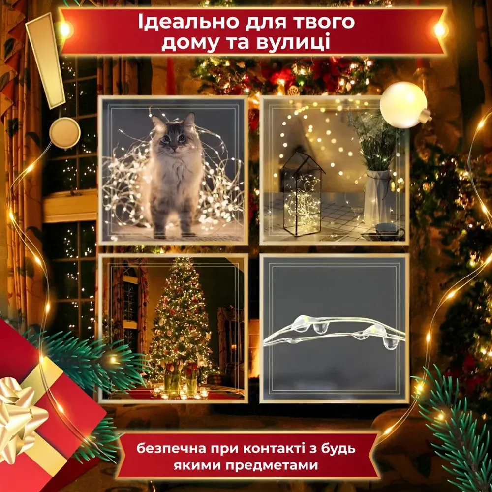 Довговічність та енергоощадження: Використовуючи сучасні LED-технології, гірлянда ефективно витрачає енергію, забезпечуючи яскраве світло та тривалий термін служби. Ви можете насолоджуватись світлом цієї гірлянди у багатьох святкових сезонах.