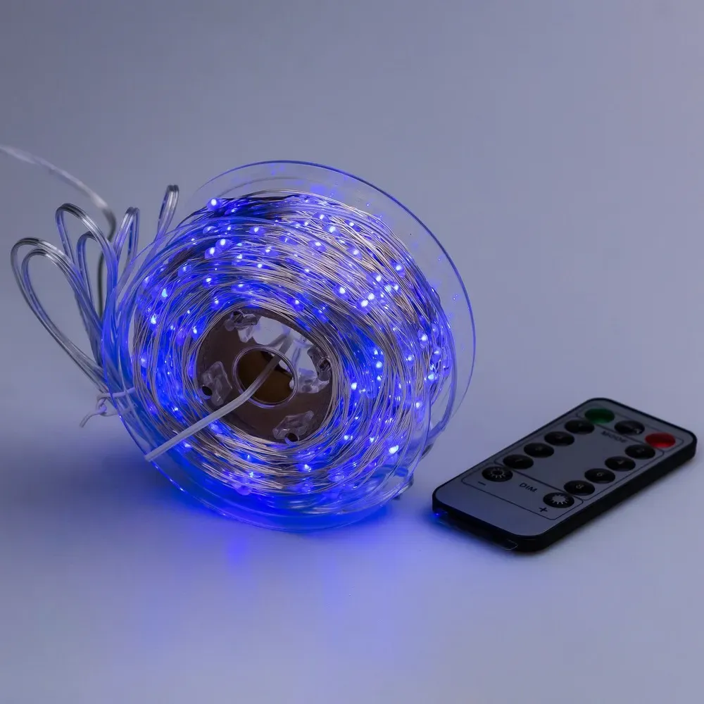 Гірлянда Роса Крапля 50 метрів 500 LED лампочок світлодіодна гірлянда в котушці мідний провід 50 м 8 функцій + пульт синя (1733034BL)