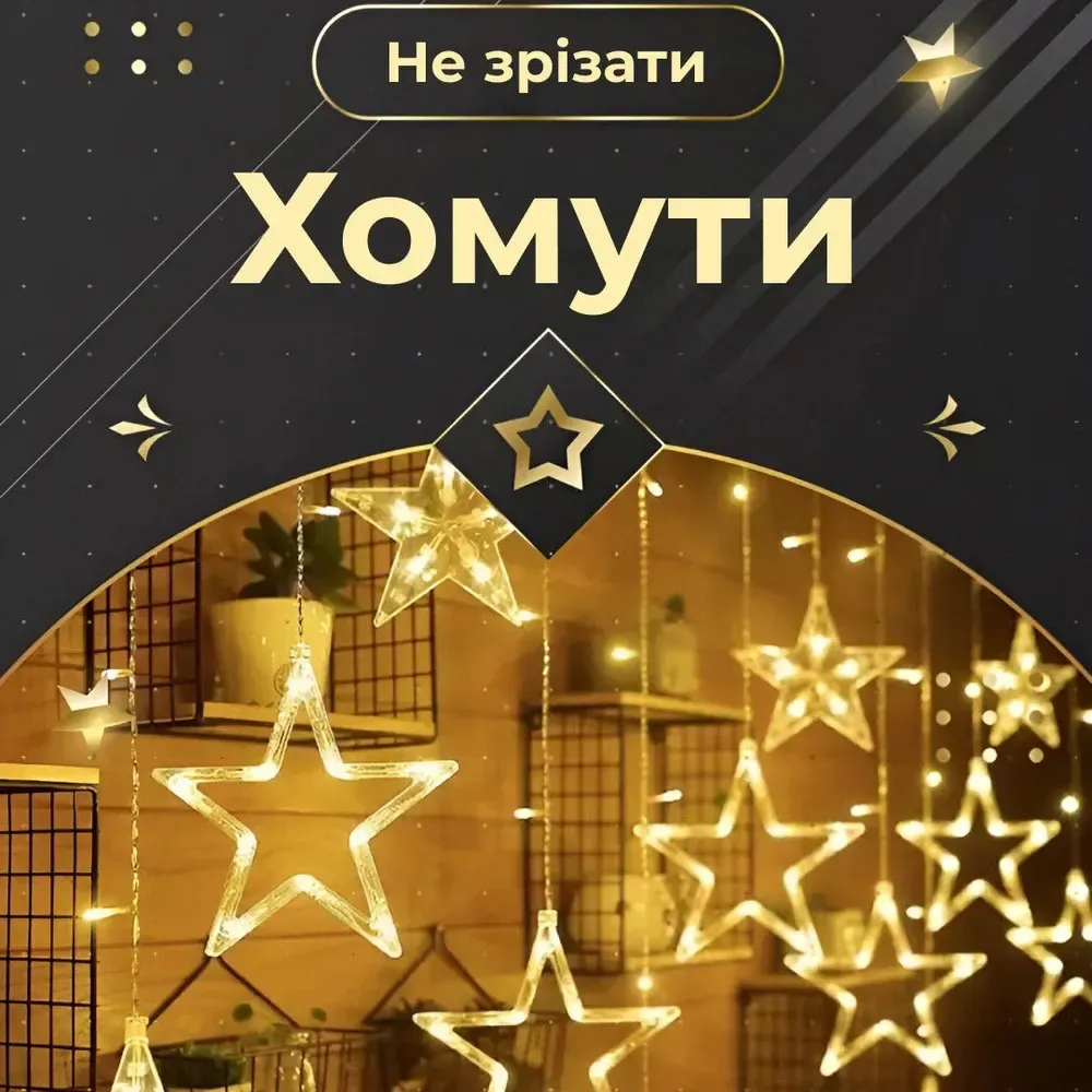 - Легка установка. Гірлянда має просту та зручну конструкцію, яка дозволяє легко встановити її в будь-якому місці. Форма зірок робить її ідеальним вибором для прикраси вікон, стін, арок або балконів.
