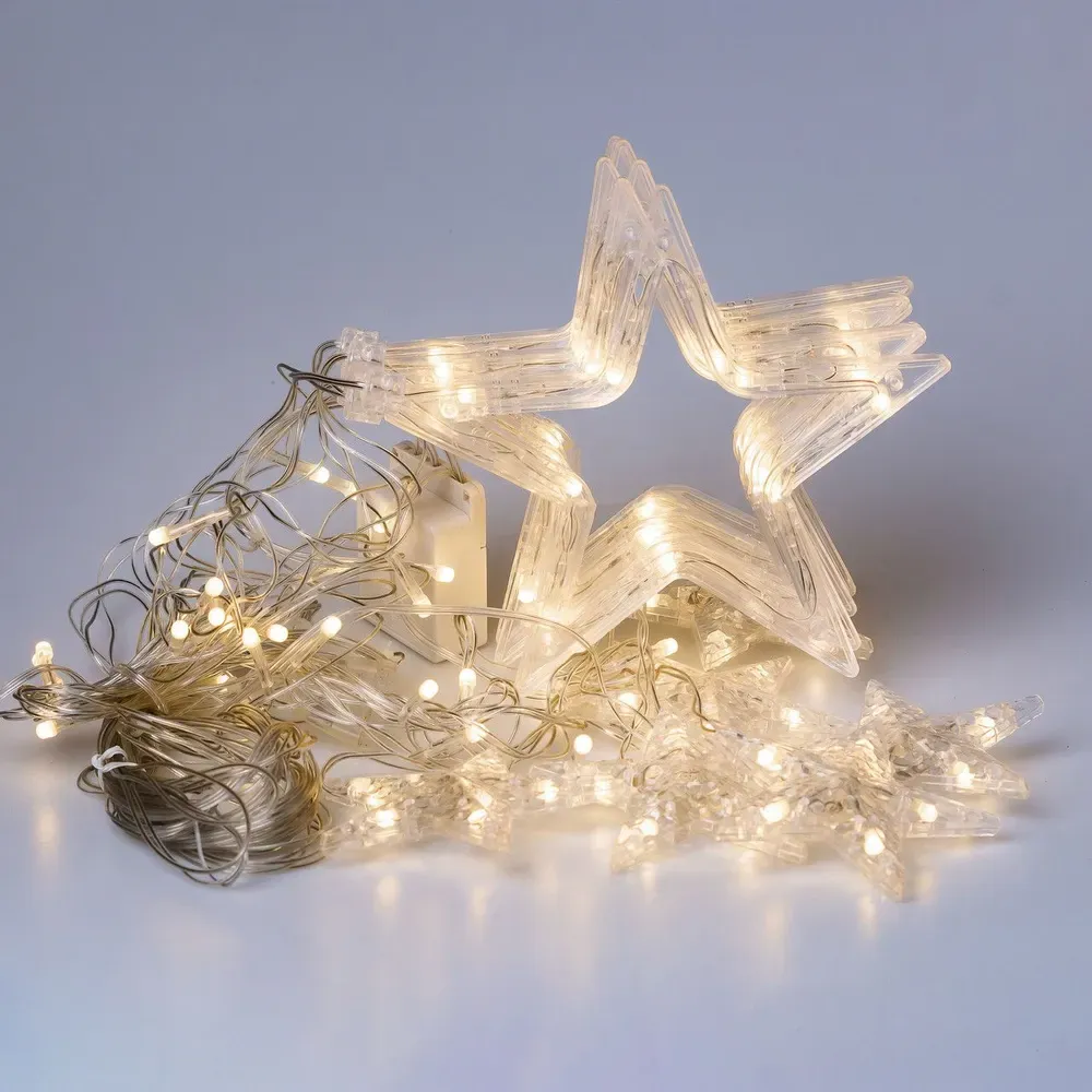 Гірлянда штора Зірки: 108 LED лампочок і 6 великих та 6 маленьких зірок