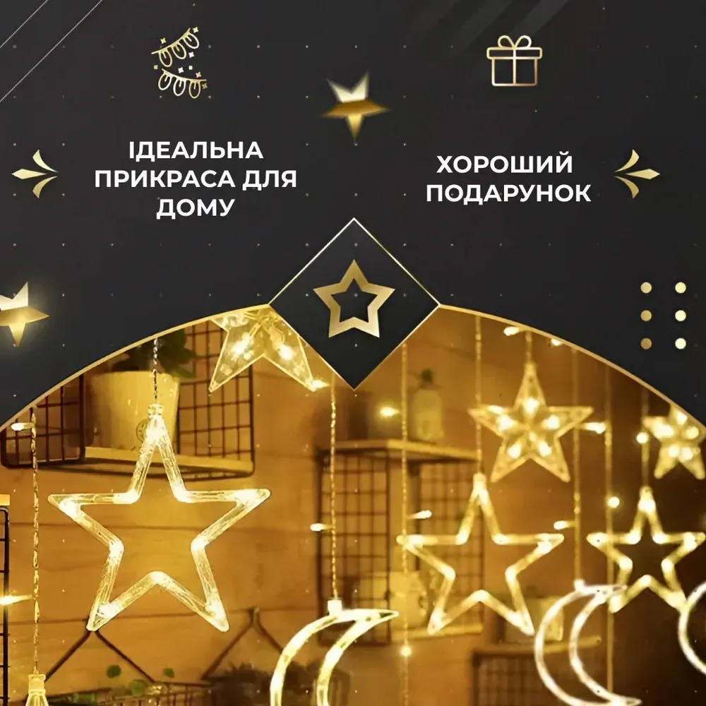 Гірлянда світлодіодна LED "штора" зірки та місяці: створіть атмосферу казкового світла