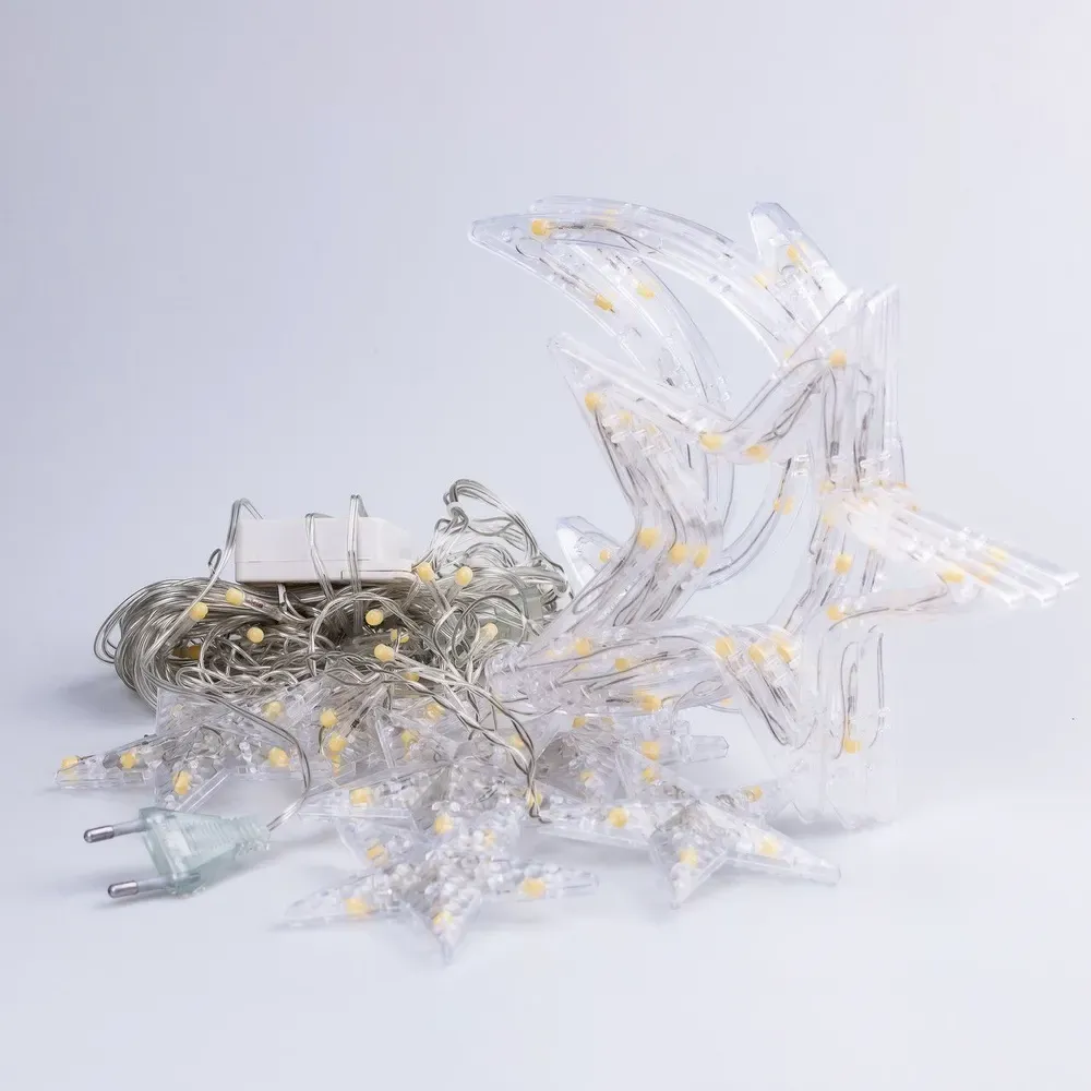 - Зірки та місяці. Зірки та місяці виготовлені з яскравих світлодіодних лампочок, які створюють м'яке та приглушене світло.